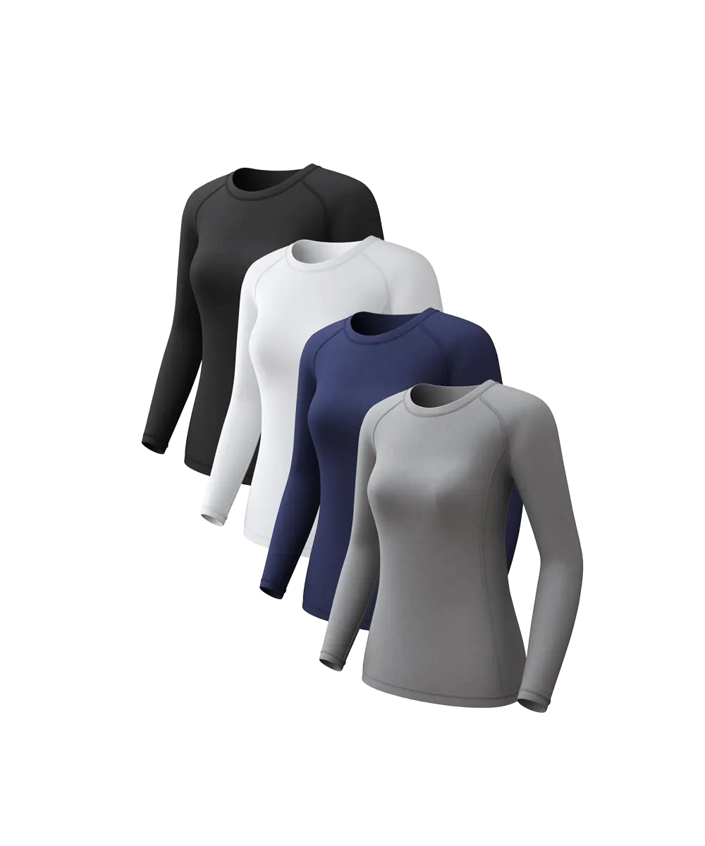 CL convallaria 4 Pack Women’s Compression Shirt Cool Dry Long Short Sleeve Workout Athletic Tops for Yoga Gym Running(Black+white+haze Blue+heather Light Gray-long Sleeve)