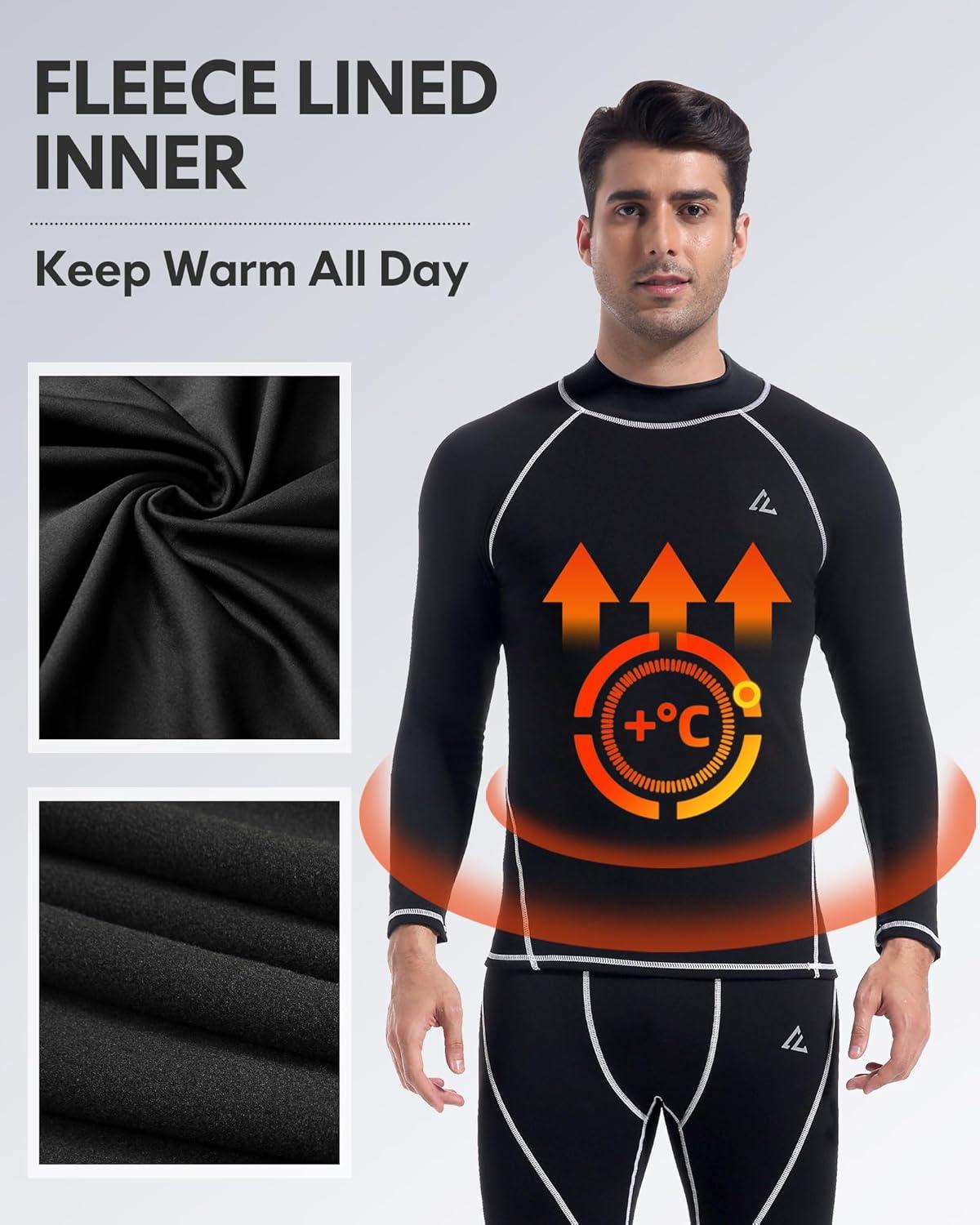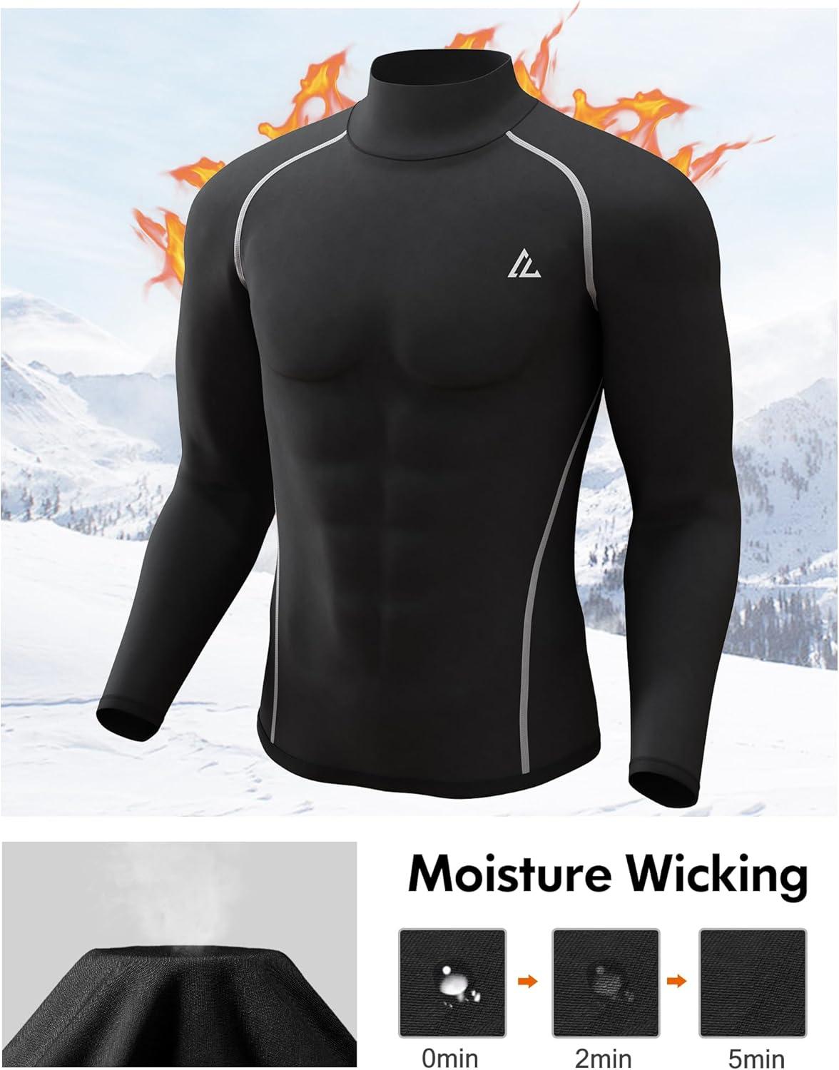 4 or 2 Pack Men’s Thermal Shirt Long Sleeve Fleece Lined Tops Base Layer Compression Undershirt Athletic Sport Gear(Turtle Neck-black/Black(white))
