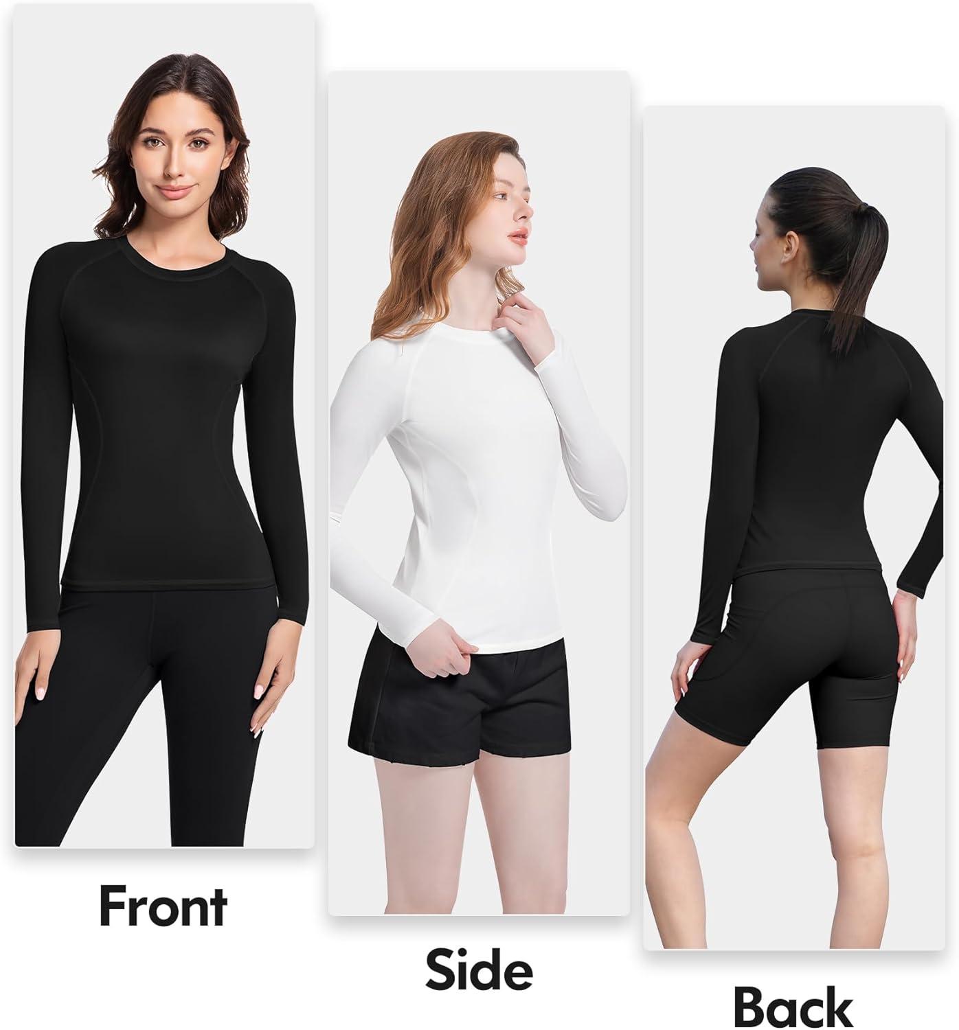 4 Pack Women’s Long Sleeve Compression Shirts Athletic with T-Shirts Workout Tops for Gym Yoga Running(2 Black+2 White)