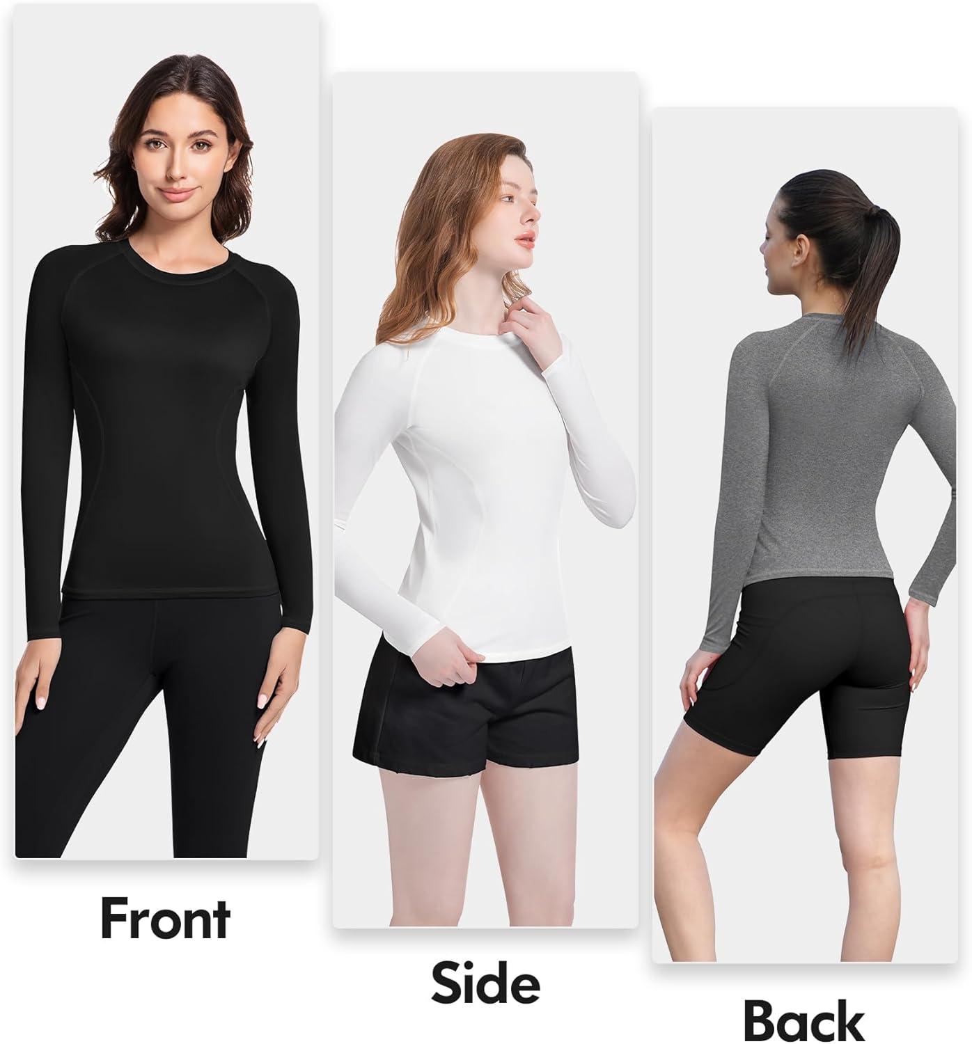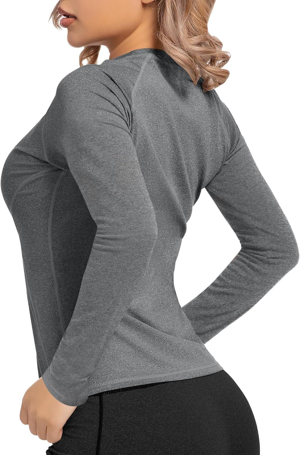 4 Pack Women’s Long Sleeve Compression Shirts Athletic with T-Shirts Workout Tops for Gym Yoga Running(2black+white+heather Ligth Gray)