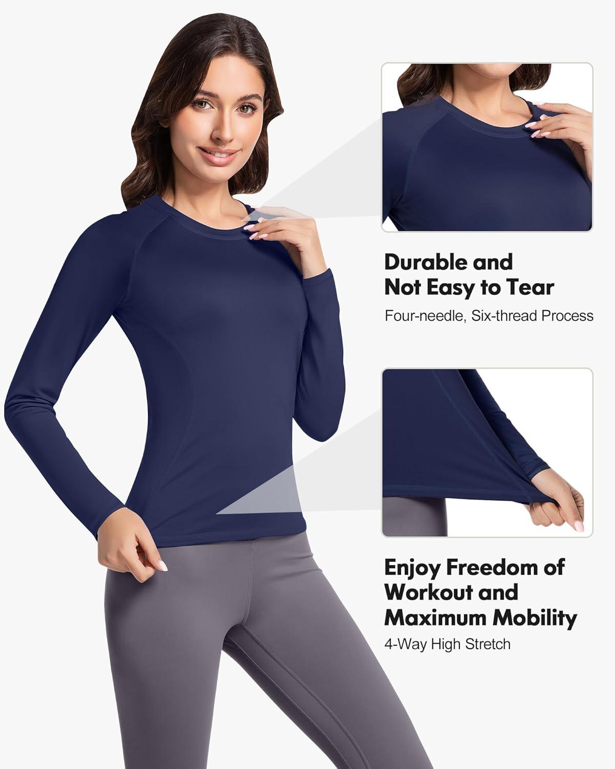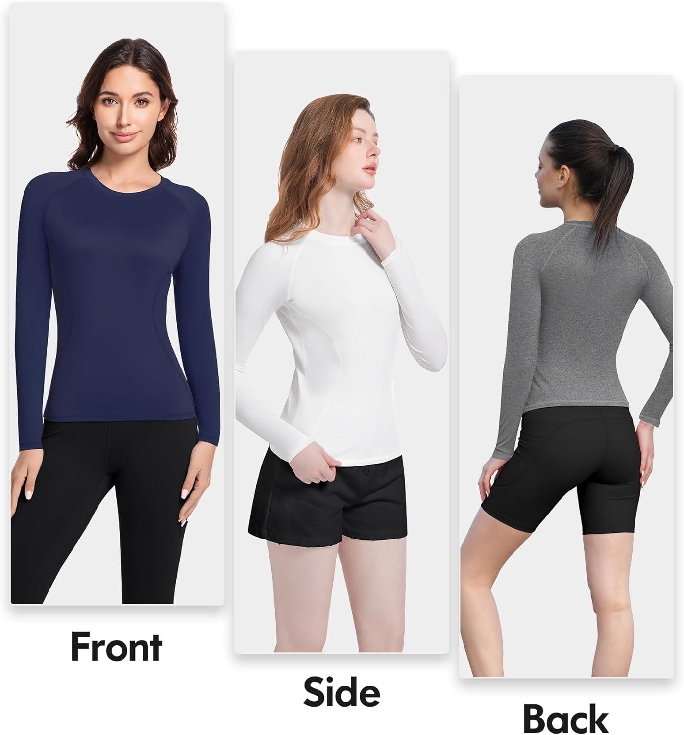 4 Pack Women’s Long Sleeve Compression Shirts Athletic with T-Shirts Workout Tops for Gym Yoga Running(Black+white+dark Blue+heather Ligth Gray)