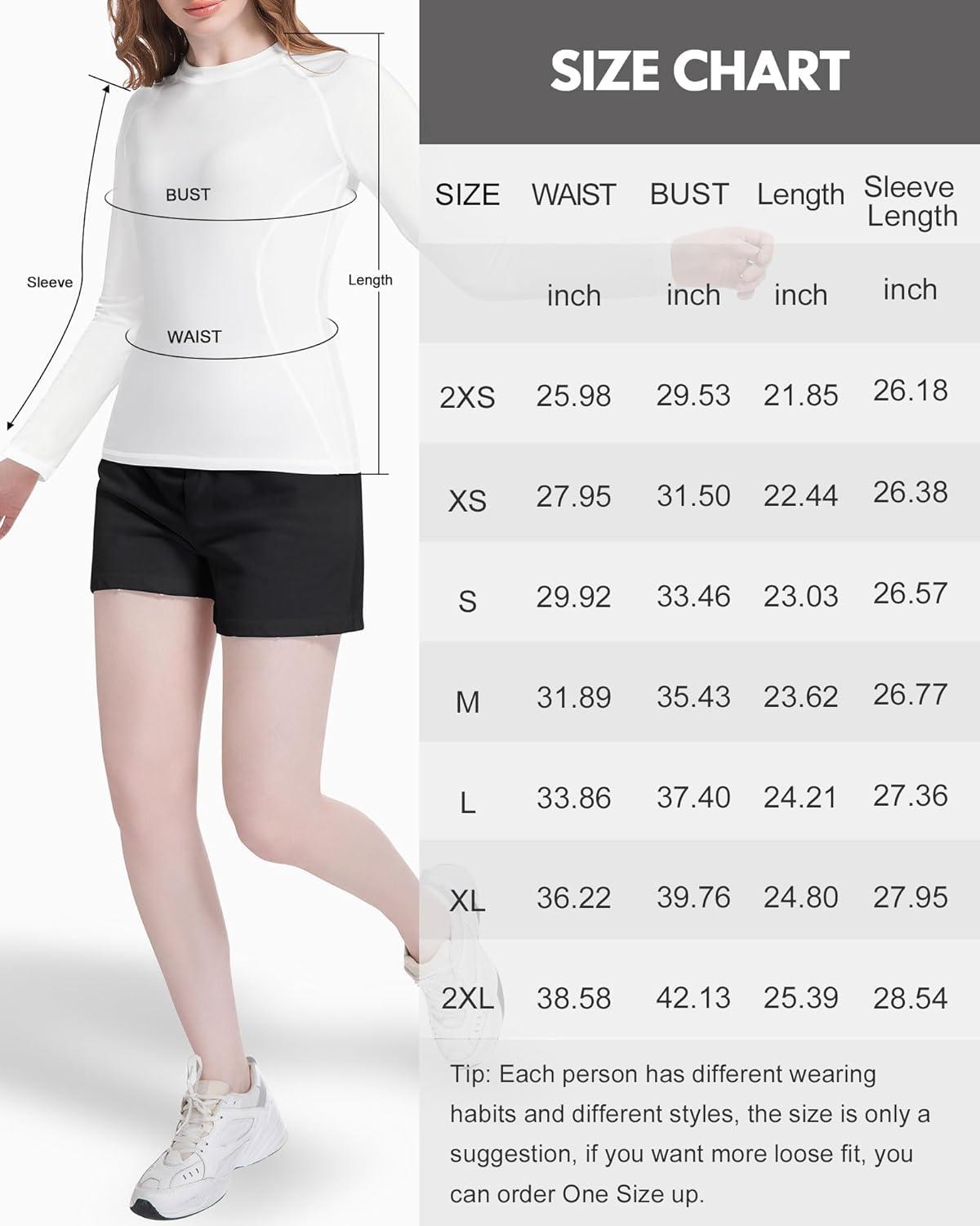 These women's compression shirts offer four-way stretch for muscle support and flexibility, enhancing recovery and performance. Made from breathable, moisture-wicking polyester and spandex, they ensure quick drying and comfort in various weather conditions. The tagless neckline prevents irritation, and the shirts come in a 4-pack, available in sizes XS to XL. Machine wash cold, hang or lay flat to dry. Ideal for workouts, yoga, and daily activities