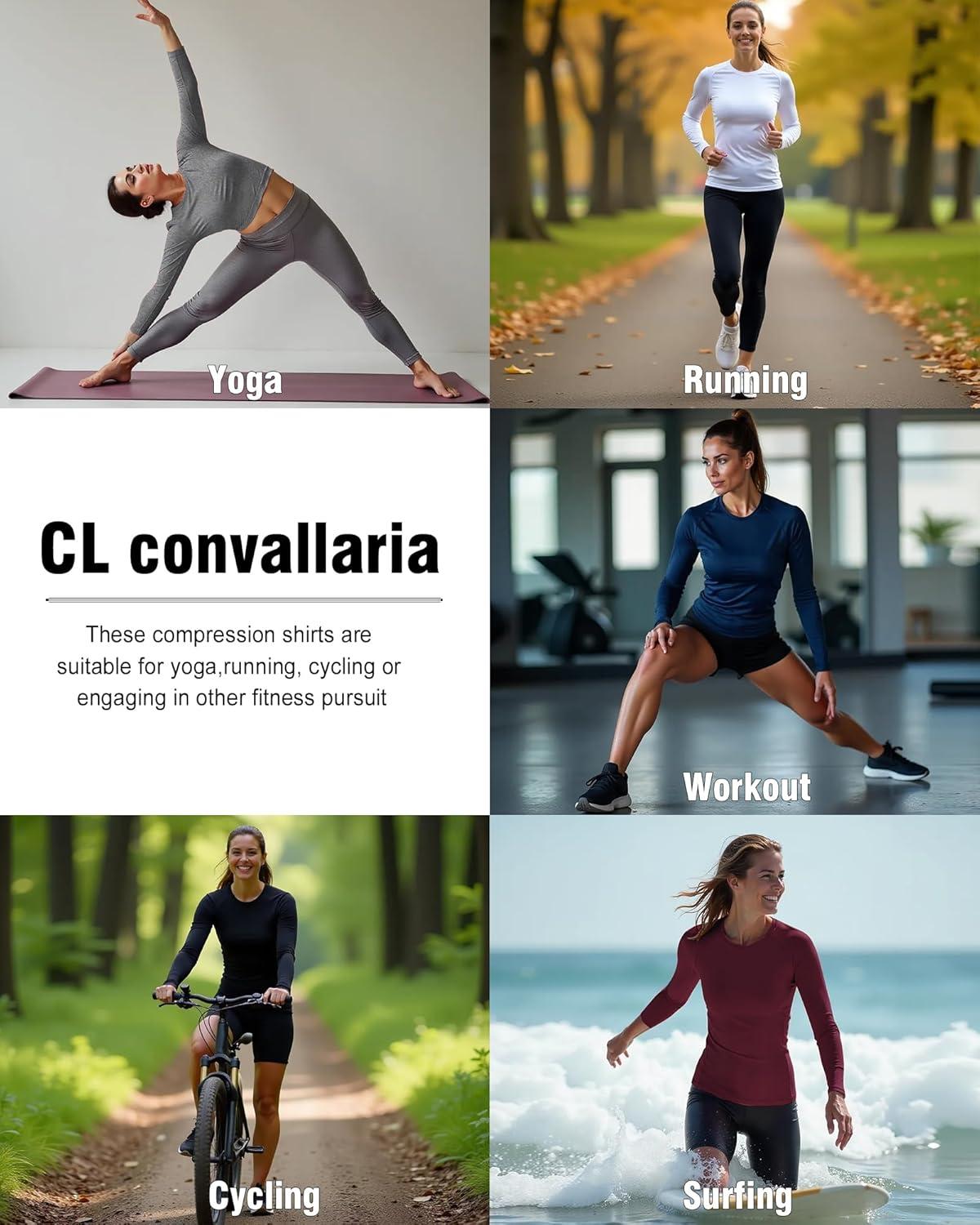 These women's compression shirts offer four-way stretch for muscle support and flexibility, enhancing recovery and performance. Made from breathable, moisture-wicking polyester and spandex, they ensure quick drying and comfort in various weather conditions. The tagless neckline prevents irritation, and the shirts come in a 4-pack, available in sizes XS to XL. Machine wash cold, hang or lay flat to dry. Ideal for workouts, yoga, and daily activities
