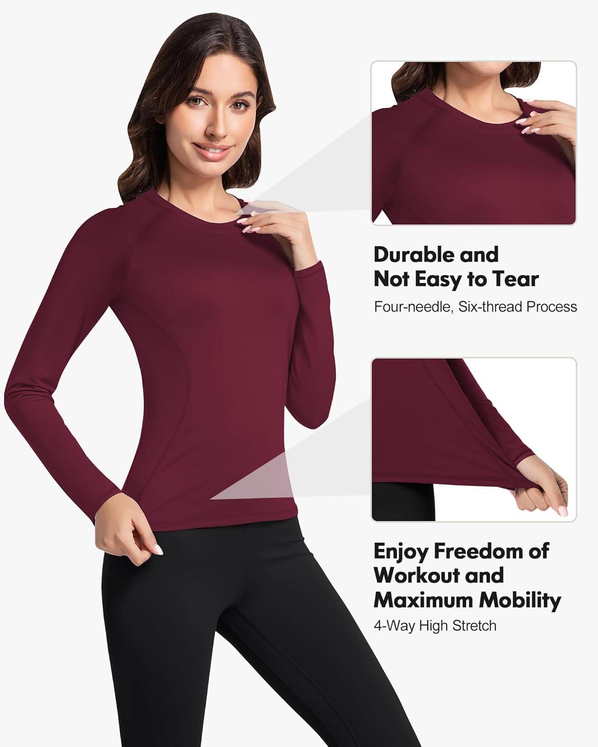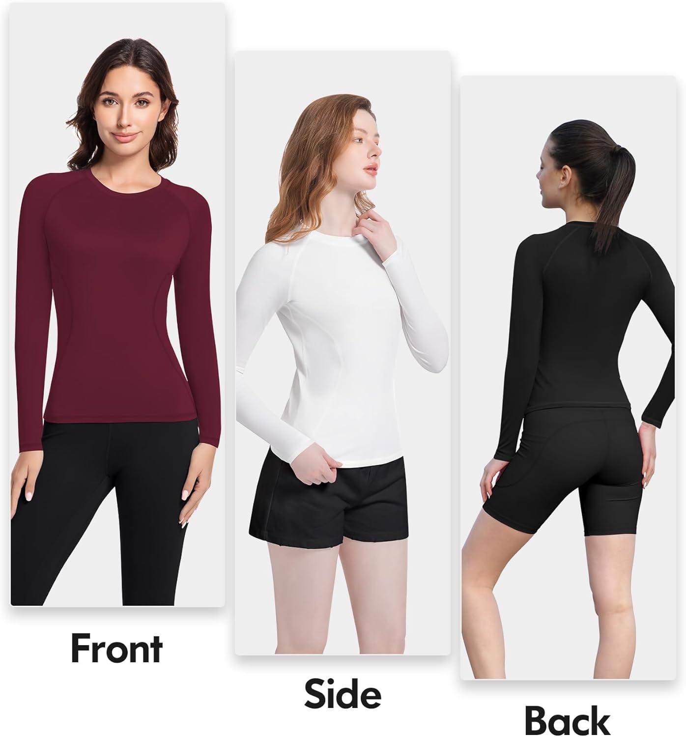 4 Pack Women’s Long Sleeve Compression Shirts Athletic with T-Shirts Workout Tops for Gym Yoga Running(Black+white+heather Ligth Gray+wine Red)