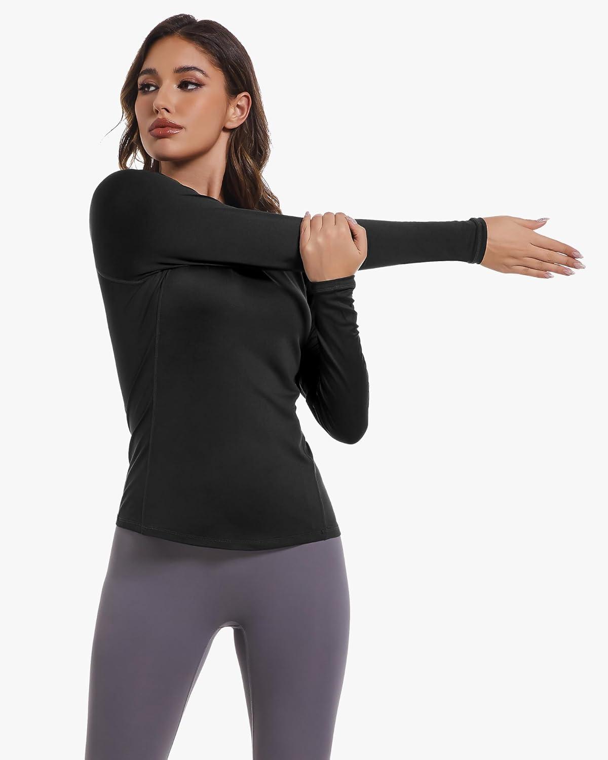 4 Pack Women’s Long Sleeve Compression Shirts, Dry Fit Workout Athletic Sun Protection Cooling Tops for Yoga Running Gym(2 Black/2 White-a)