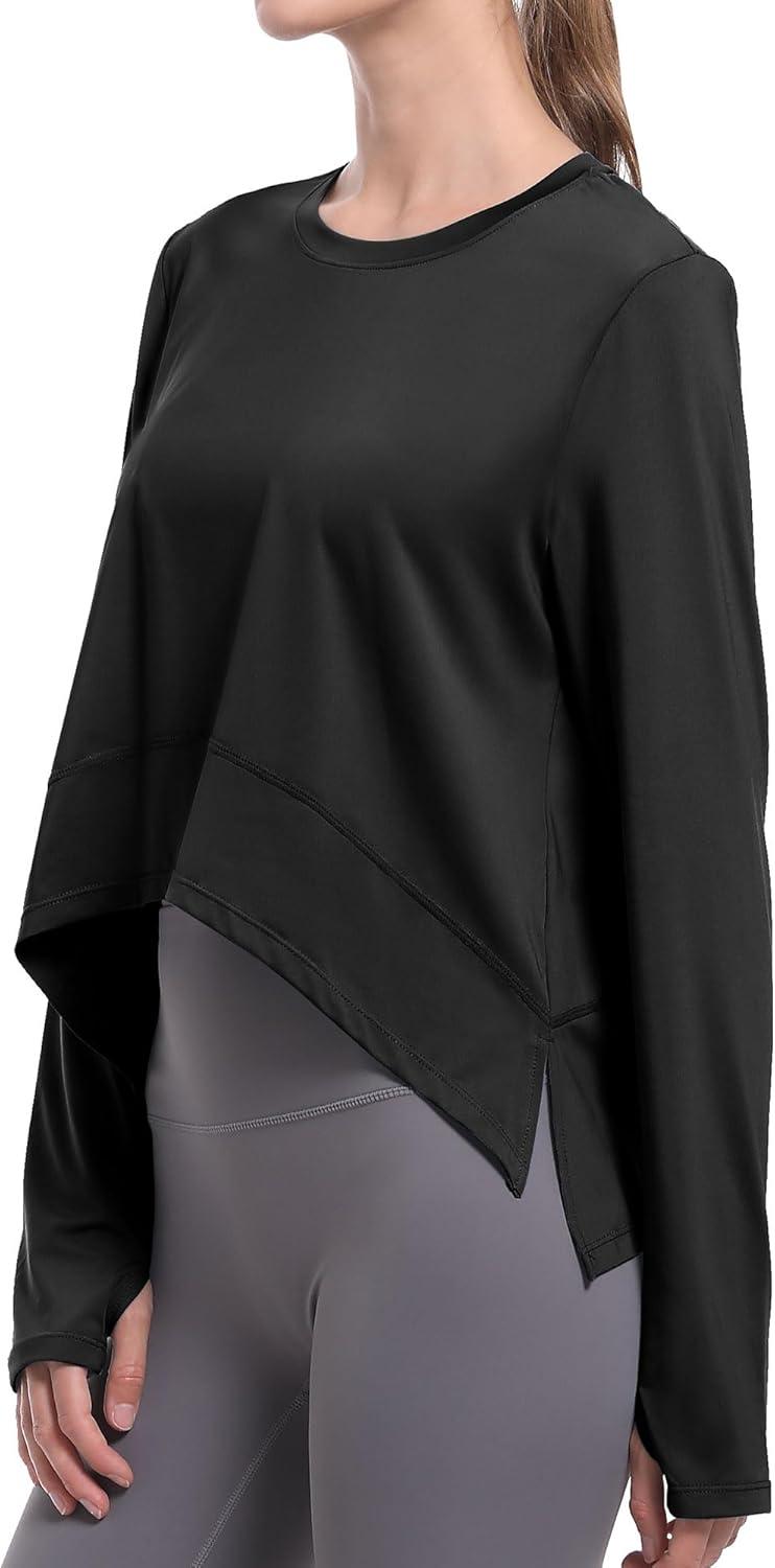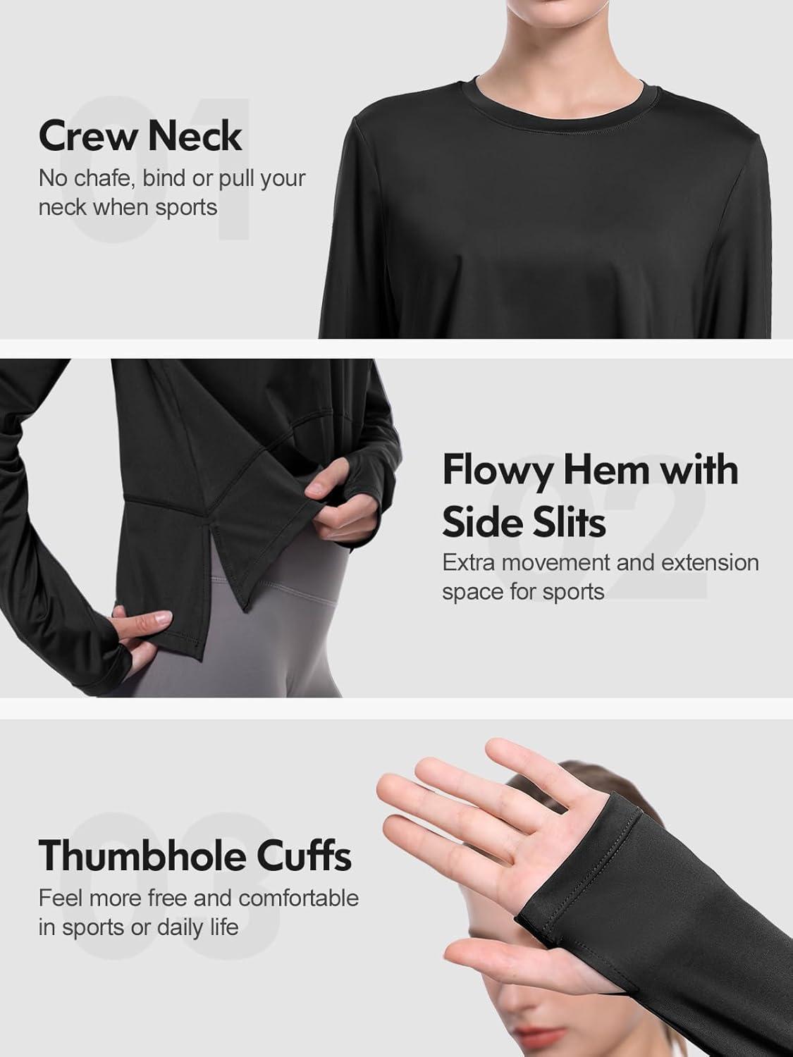 4 Pack Women’s Long Sleeve Compression Shirts, Dry Fit Workout Athletic Sun Protection Cooling Tops for Yoga Running Gym(F-black)