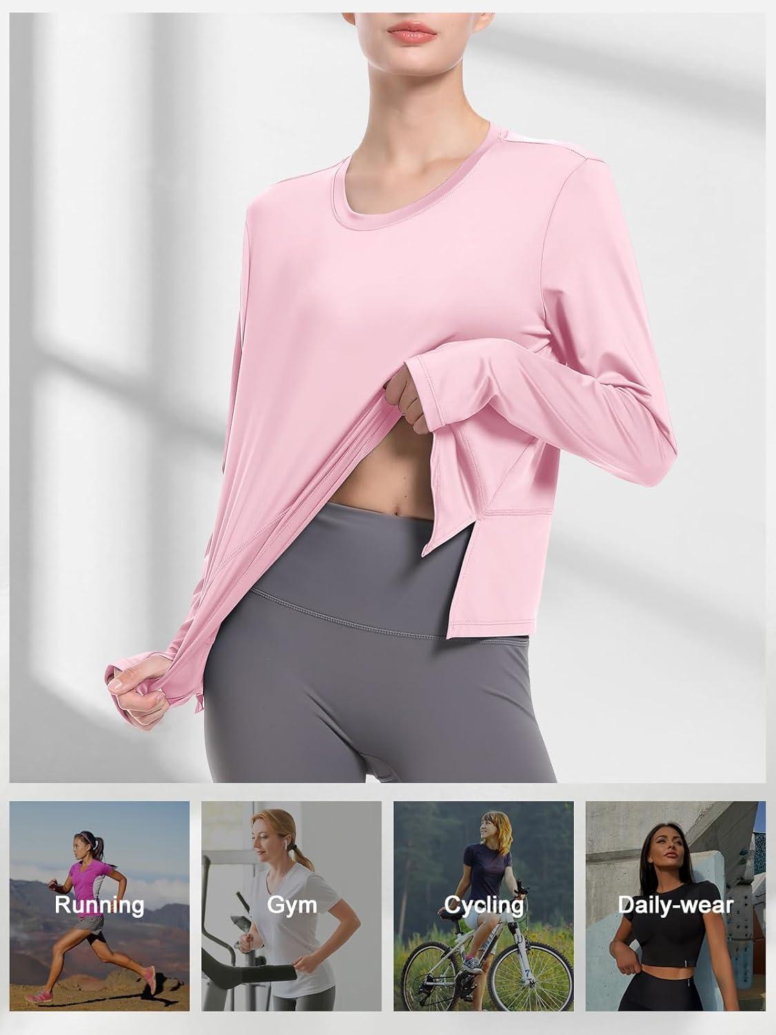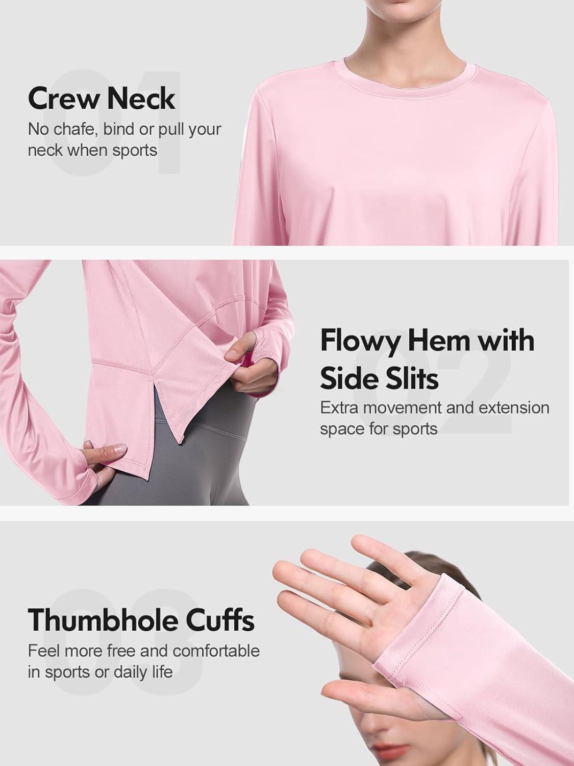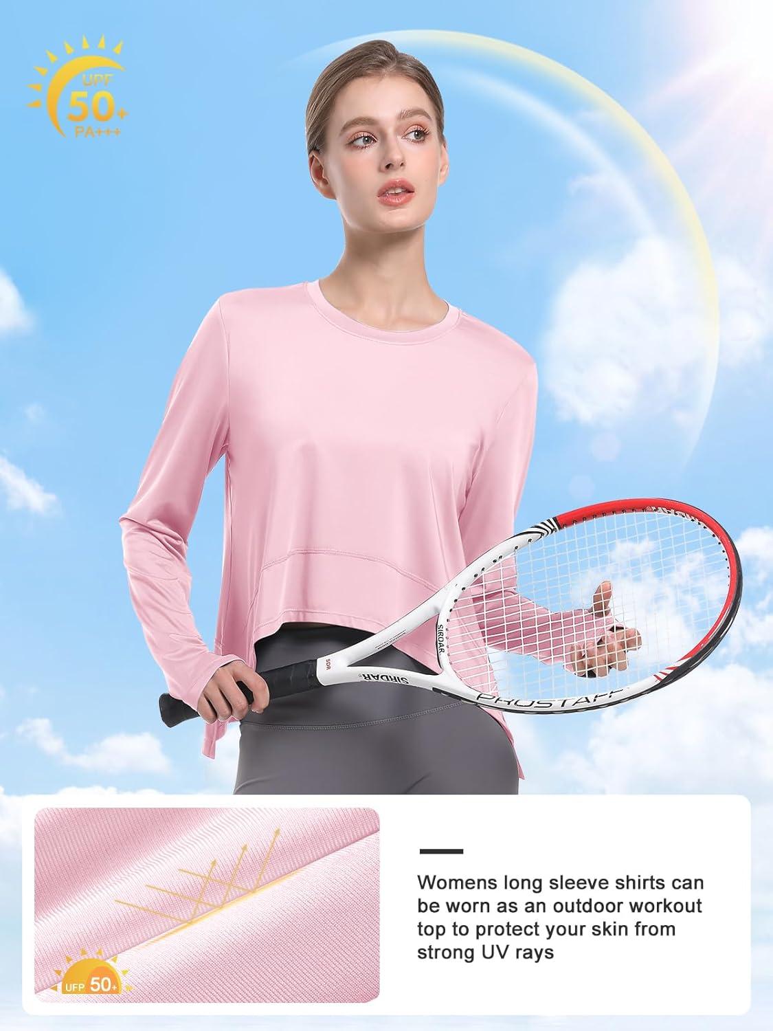 4 Pack Women’s Long Sleeve Compression Shirts, Dry Fit Workout Athletic Sun Protection Cooling Tops for Yoga Running Gym(F-light Pink)
