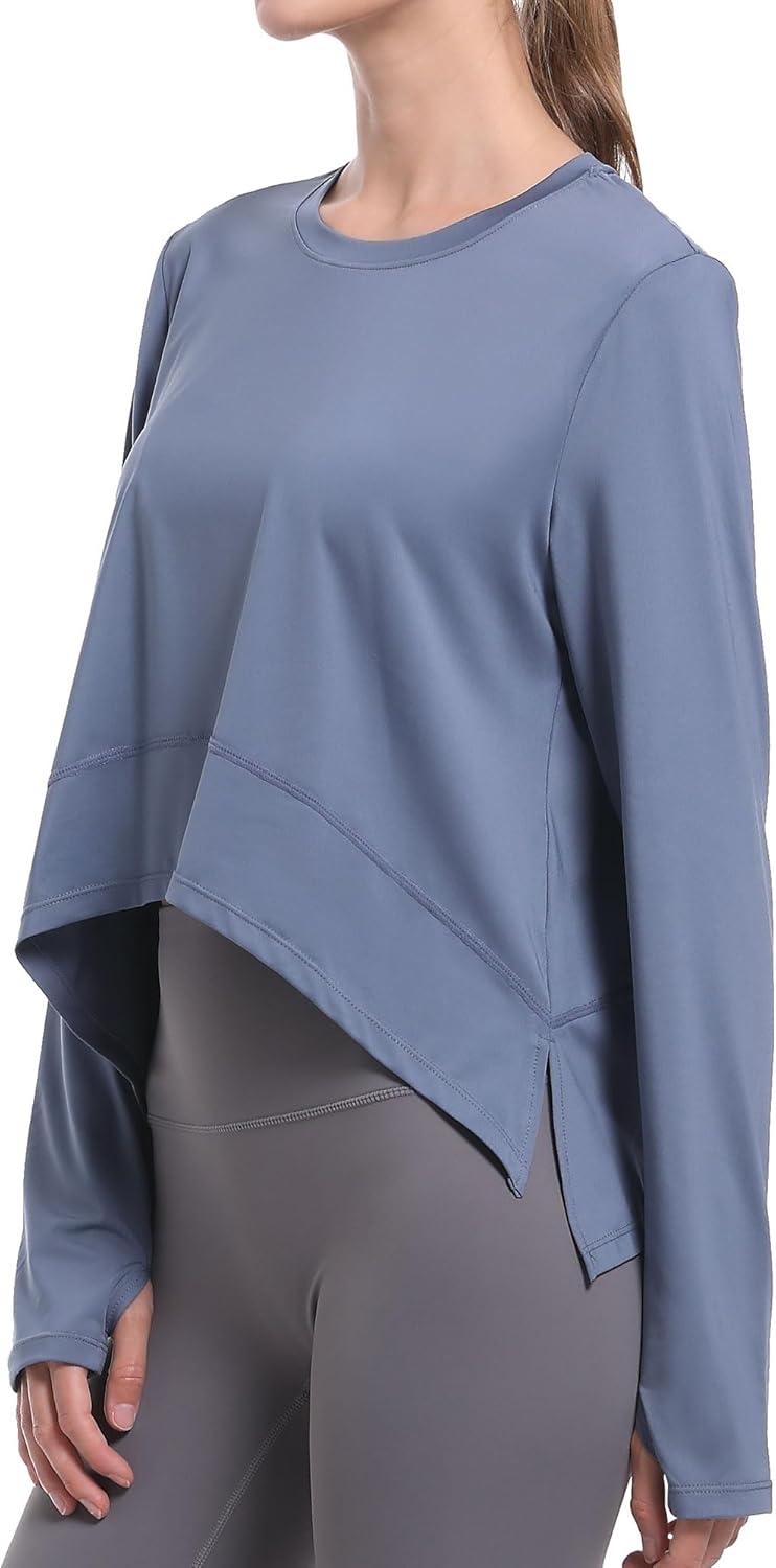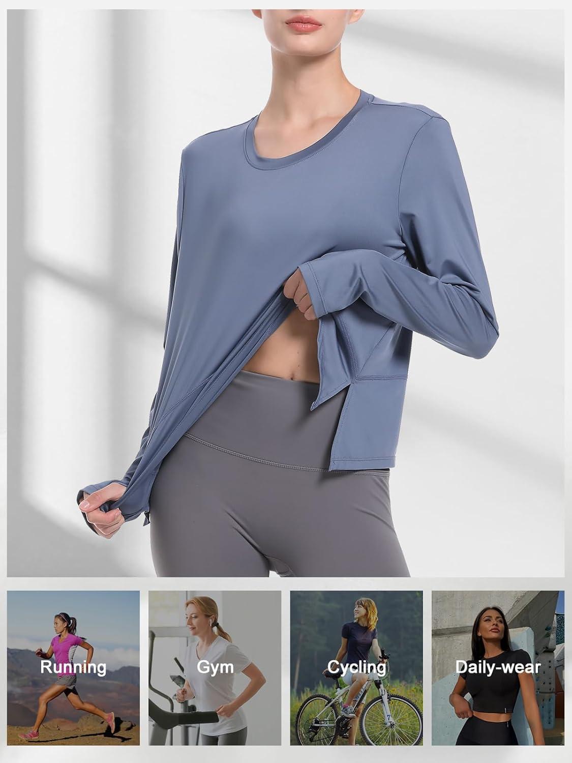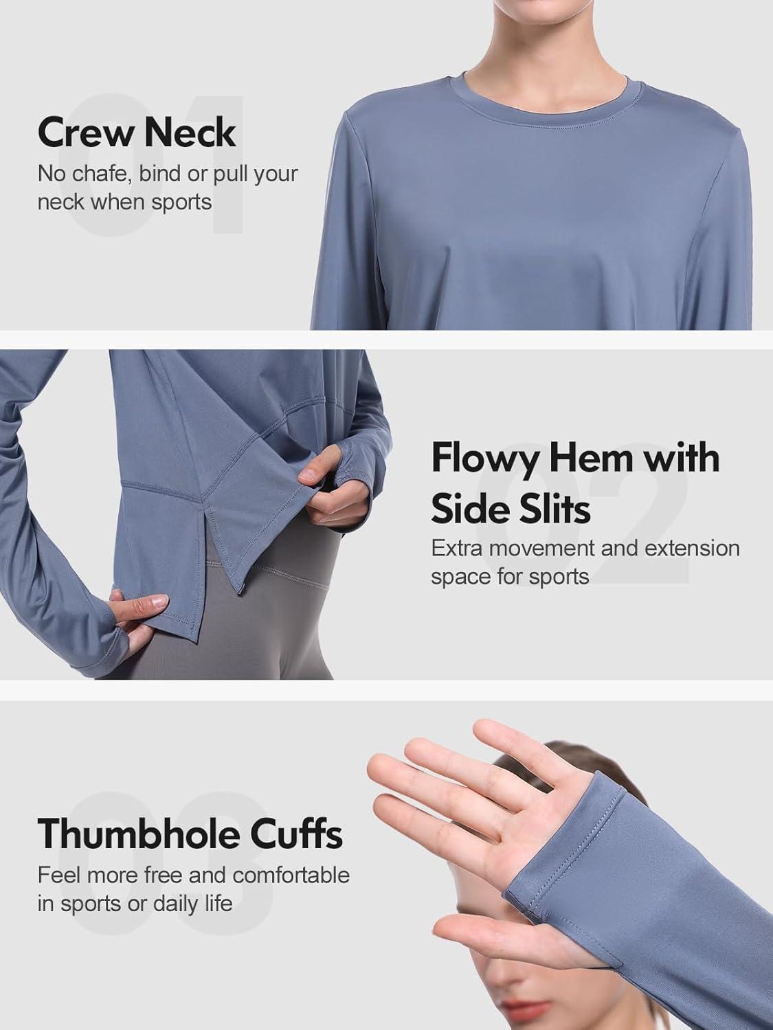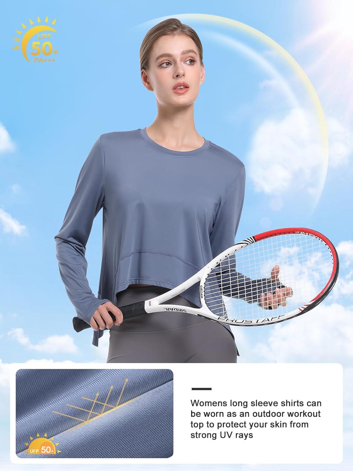 4 Pack Women’s Long Sleeve Compression Shirts, Dry Fit Workout Athletic Sun Protection Cooling Tops for Yoga Running Gym(F-mist Blue)
