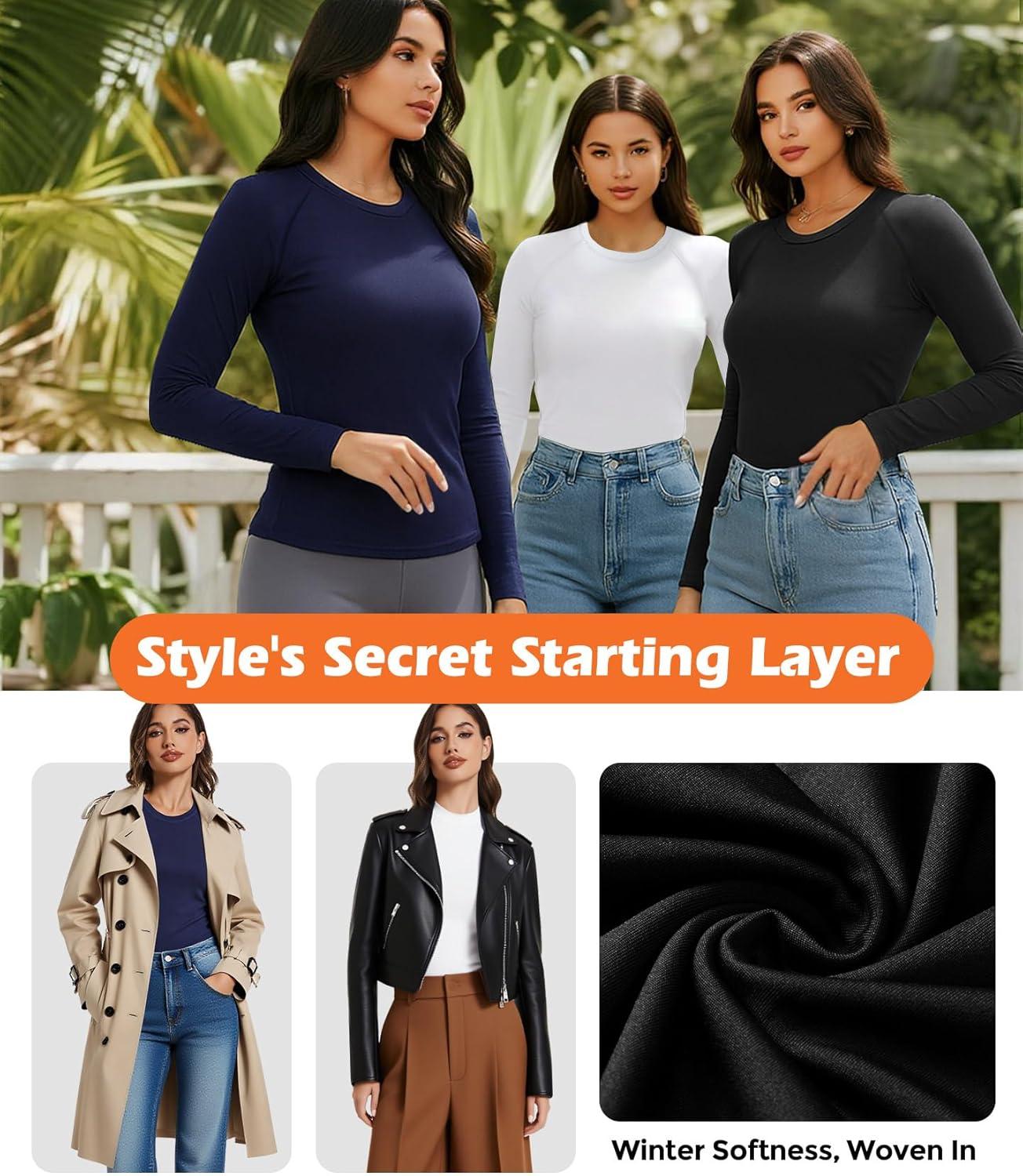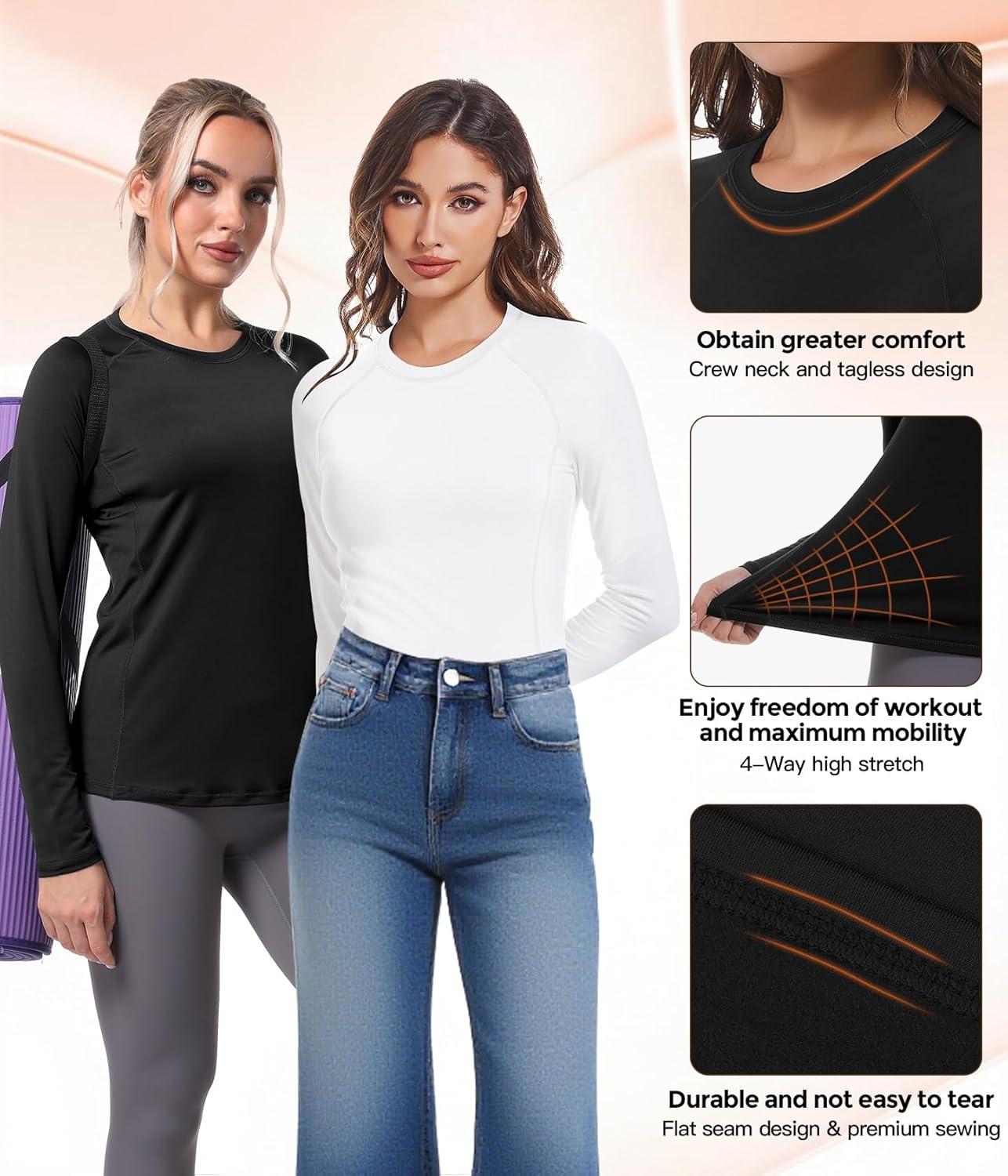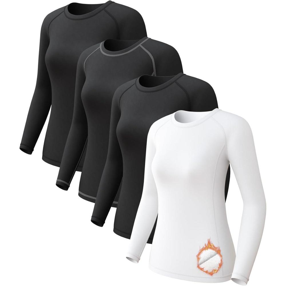 4 Pack Women’s Long Sleeve Compression Shirts, Dry Fit Workout Athletic Sun Protection Cooling Tops for Yoga Running Gym(T-2 Black/Black(white)/White)