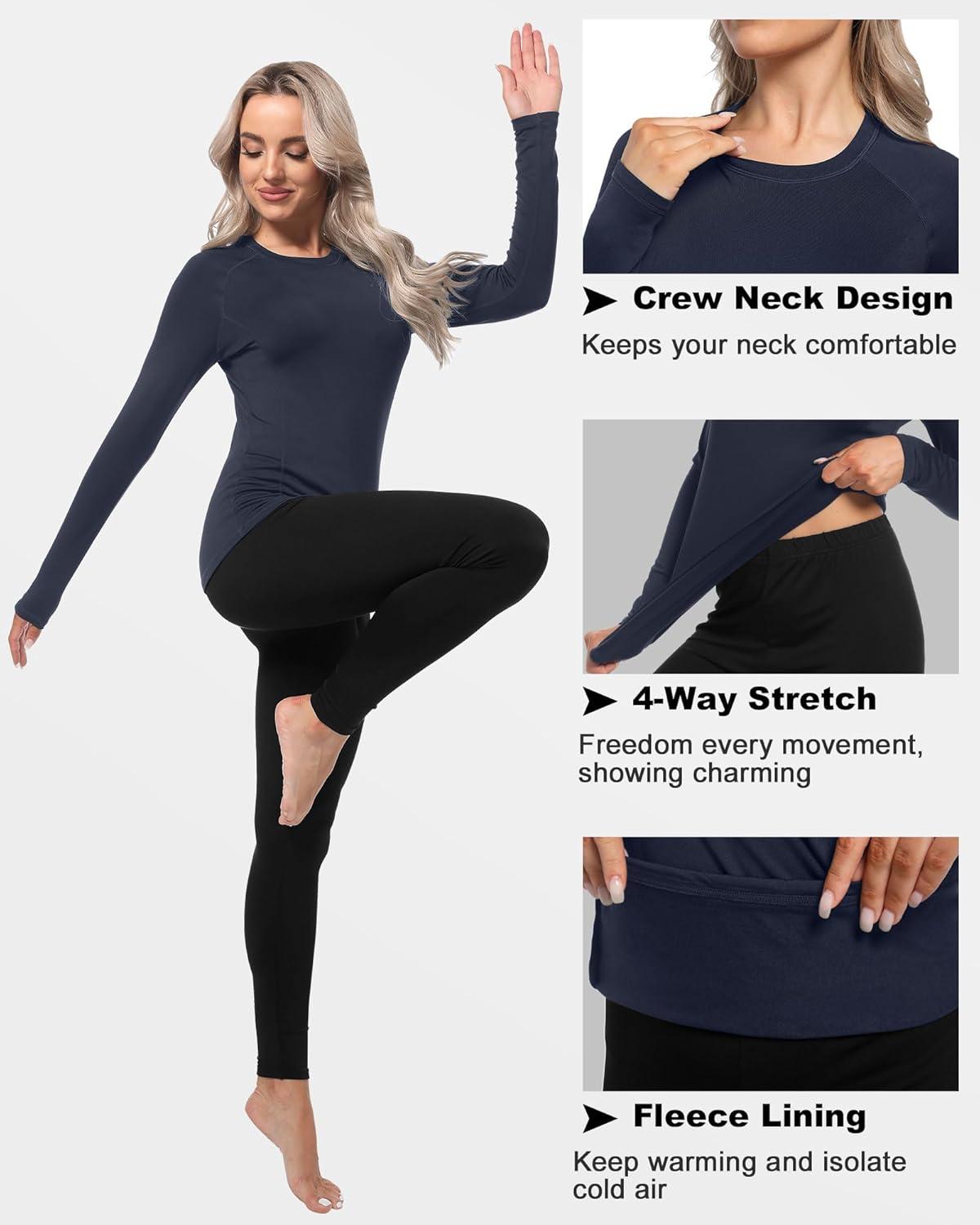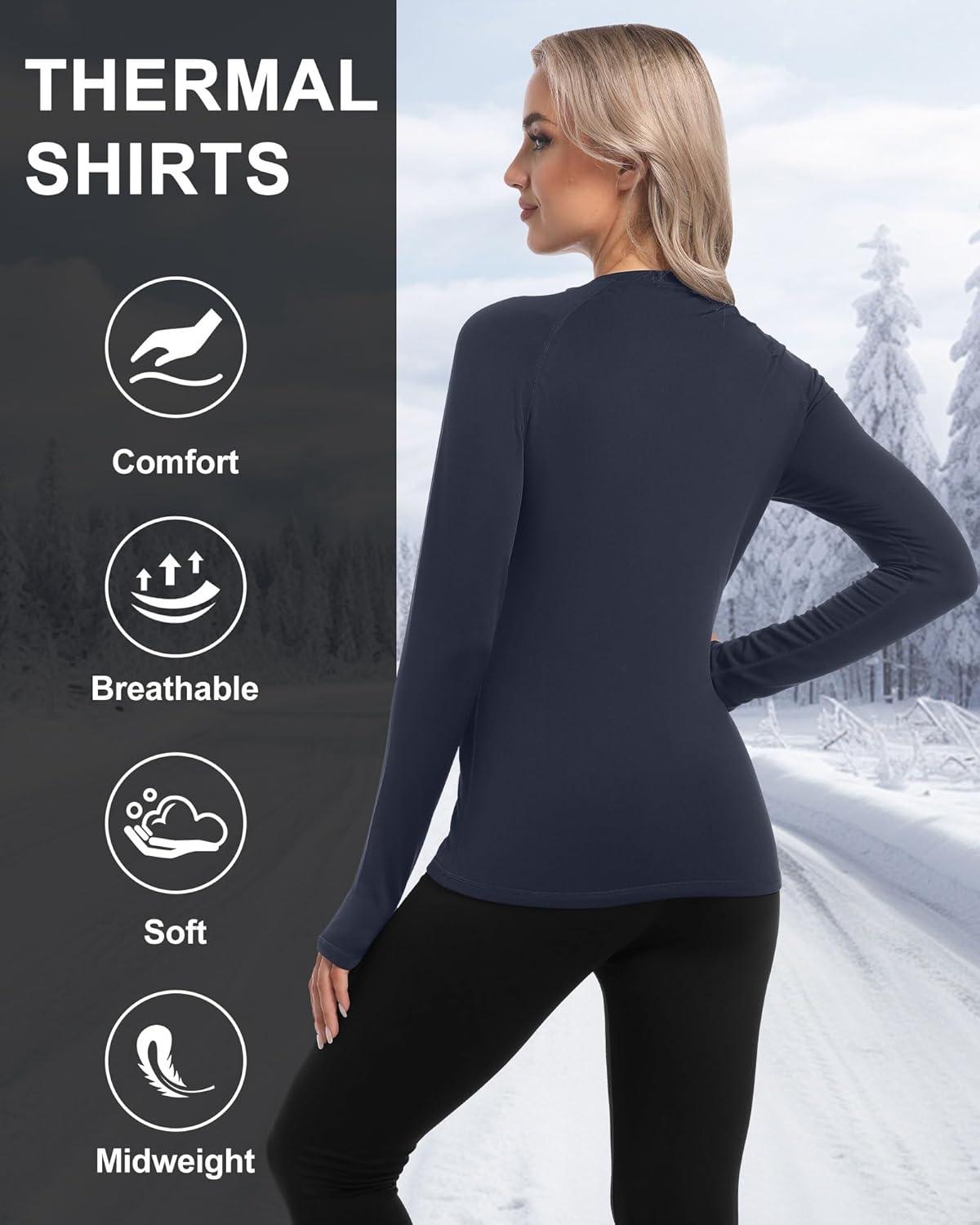 4 Pack Women’s Long Sleeve Compression Shirts, Dry Fit Workout Athletic Sun Protection Cooling Tops for Yoga Running Gym(T-black/Charcoal)