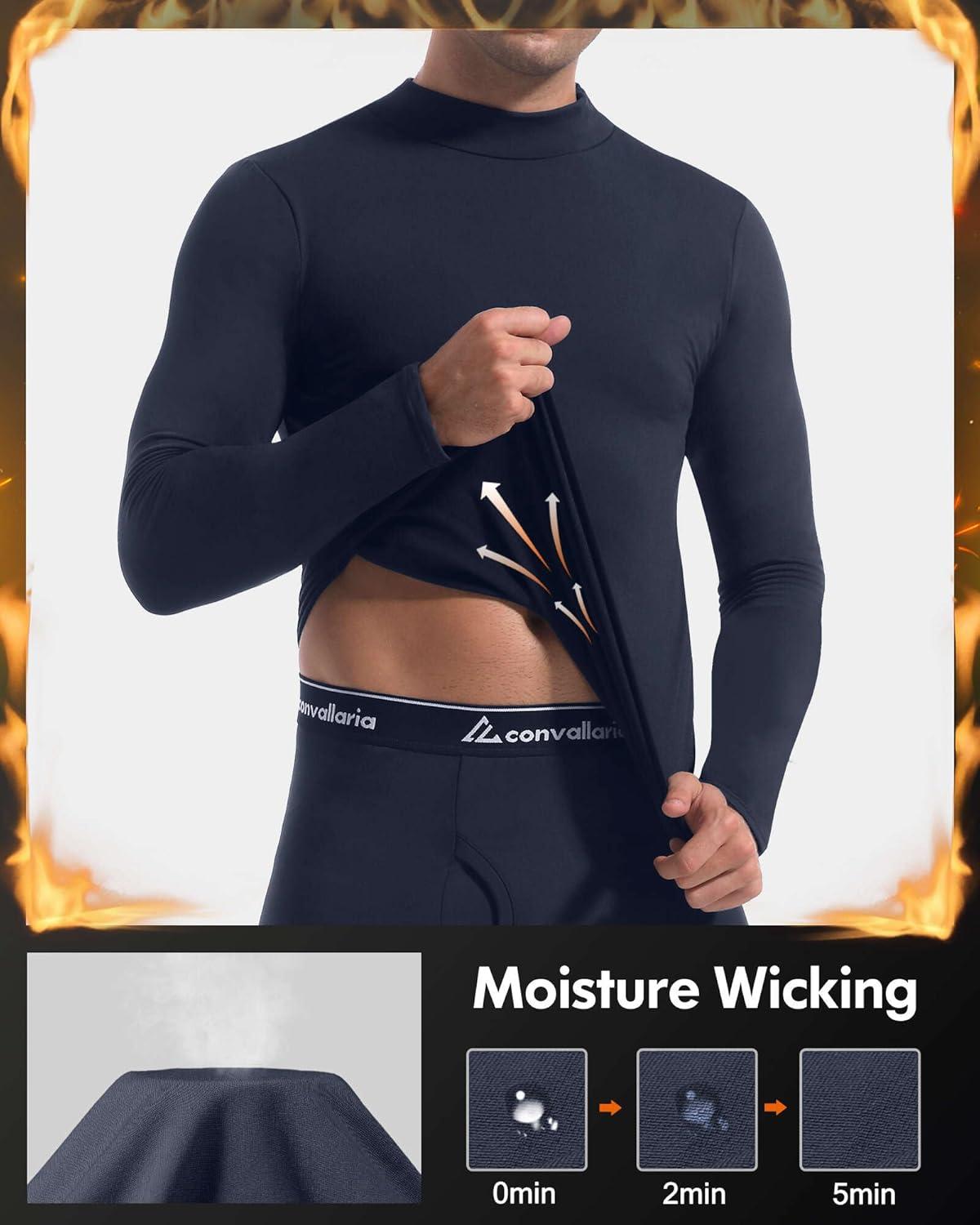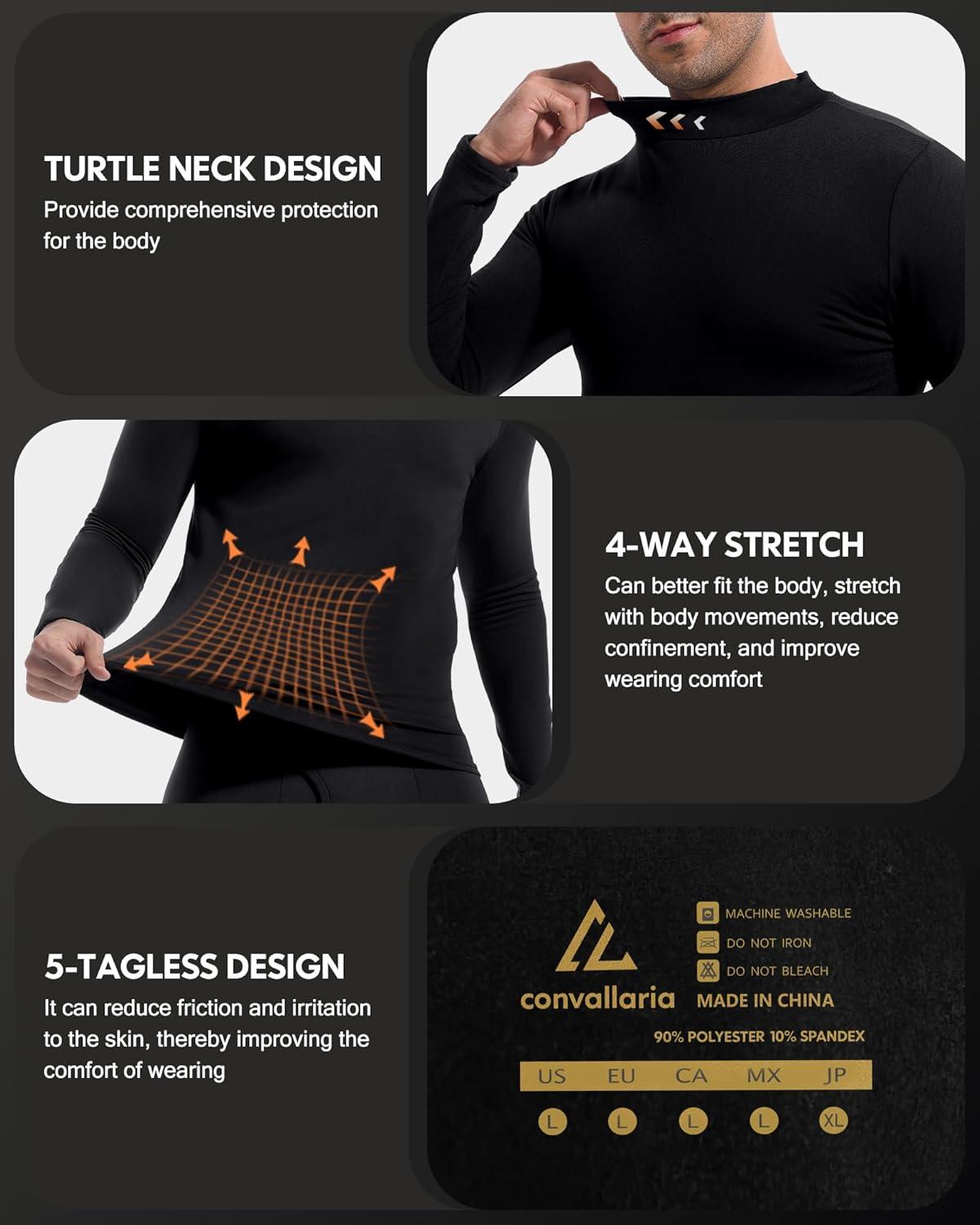 5 or 4 Pack Thermal Shirts for Men Turtle Neck Fleece Lined Long Sleeve Tops Workout Base Layer Cold Weather Gear(2 Black/Blue/Charcoal)
