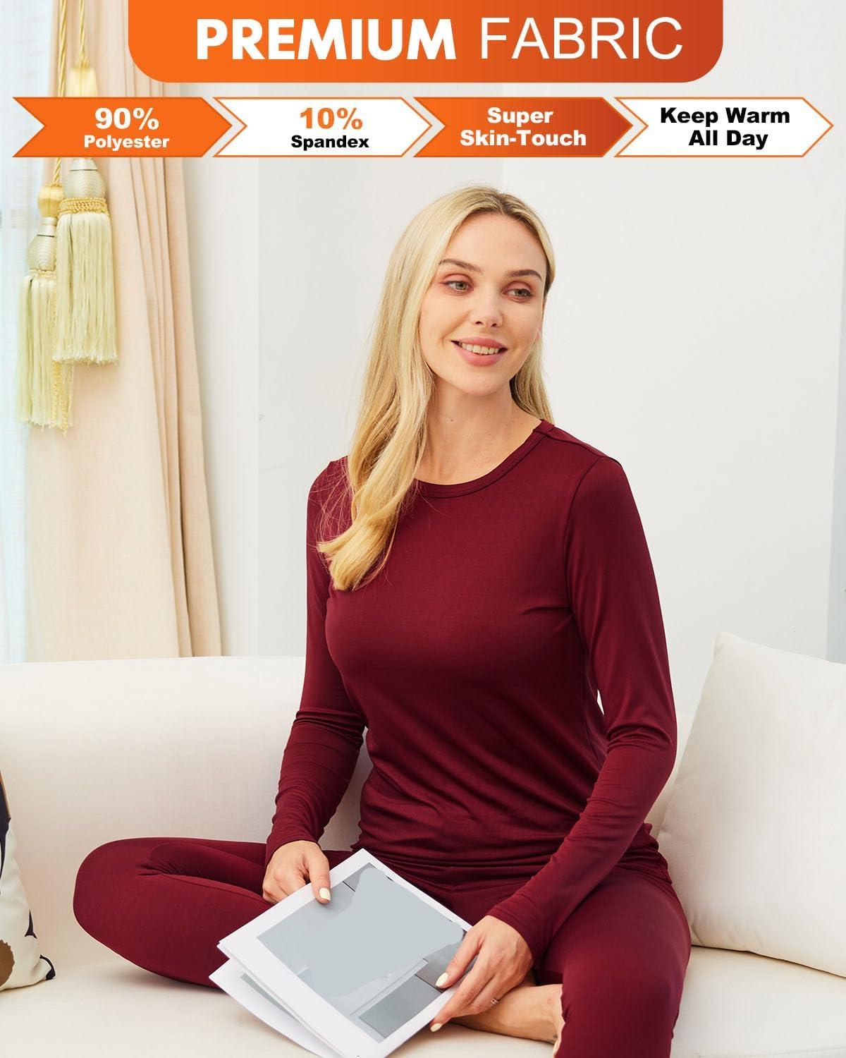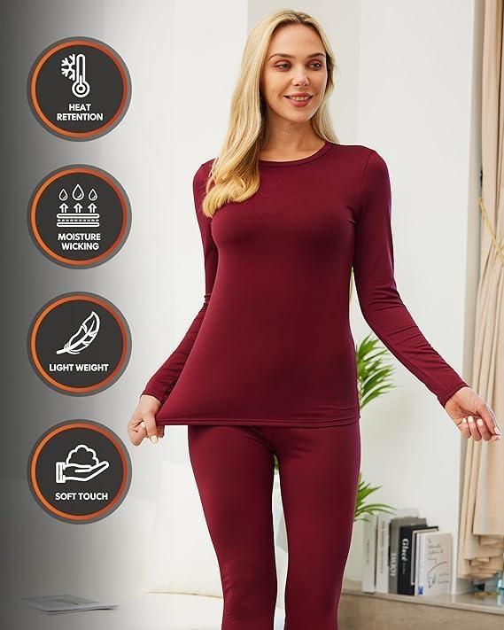 CL convallaira Women Thermal Underwear Base Layer Long Johns with Fleece Lined Set Winter Warm Top Bottom(Crew Neck-a-red)