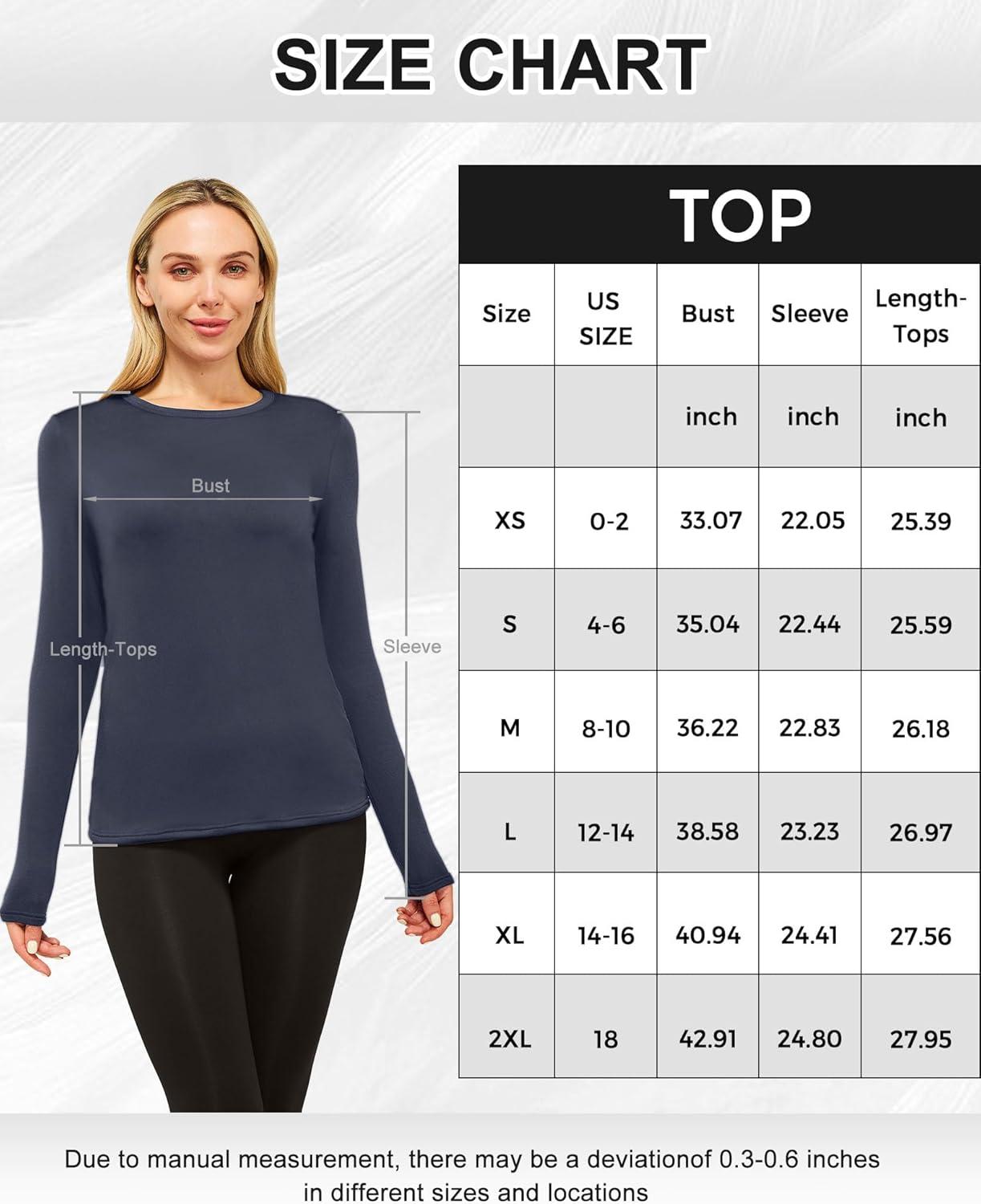 CL convallaria 1 2 4 Pack Women’s Thermal Underwear Tops, Women Fleece Lined Long Sleeve Baselayer Shirt for Winter(Black & Charcoal)