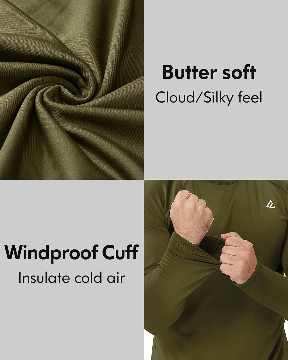 CL convallaria 2 Pack Mens Thermal Underwear Fleece Lined Long Johns Winter Base Layer Cold Weather Hunting Gear(Black & Army Green-crew Neck)