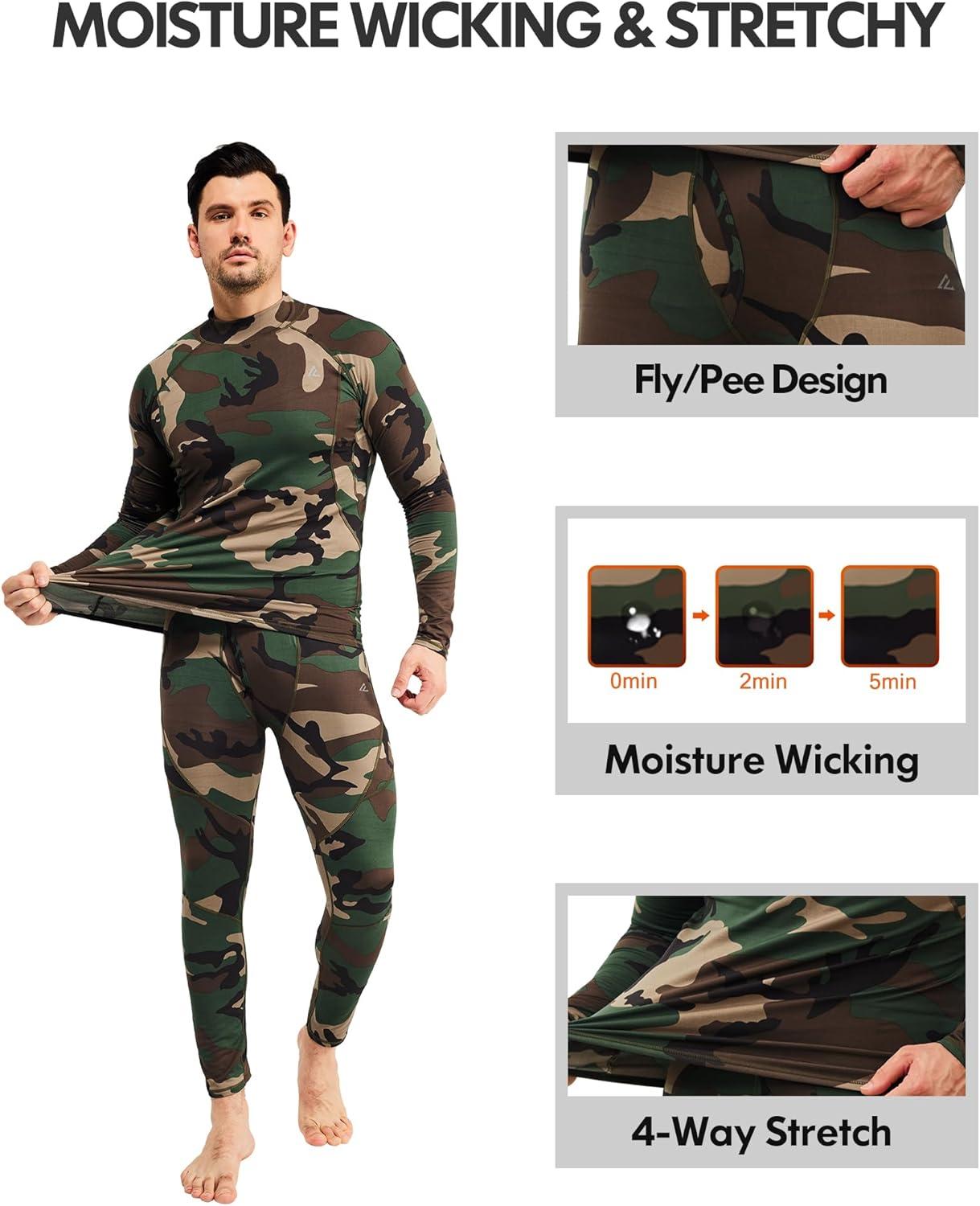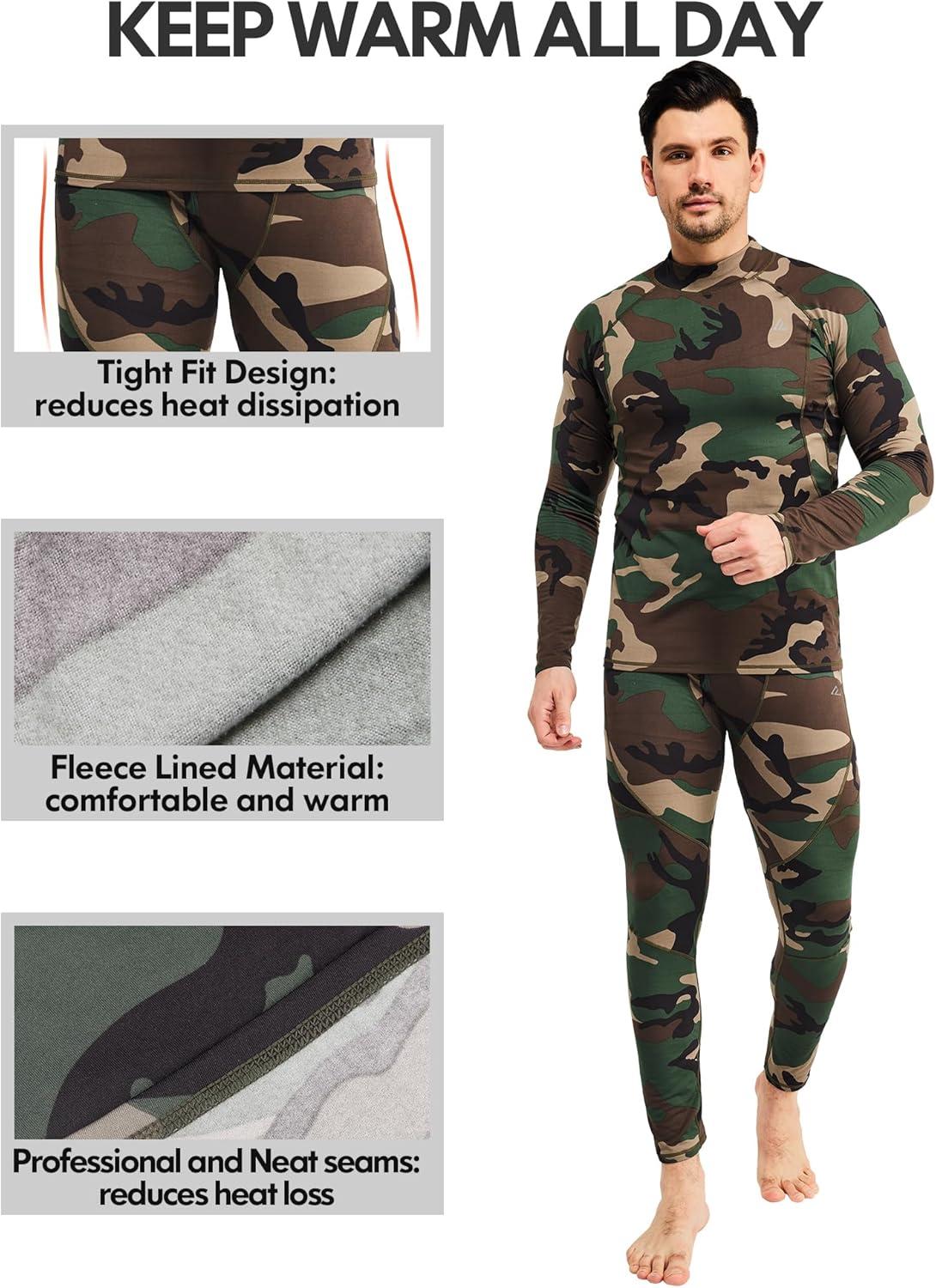 CL convallaria 2 Pack Mens Thermal Underwear Fleece Lined Long Johns Winter Base Layer Cold Weather Hunting Gear(Black & Camo Green-turtle Neck)