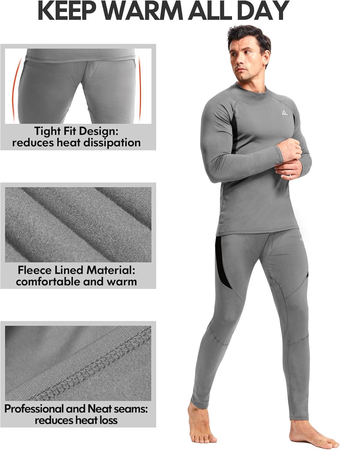 CL convallaria 2 Pack Mens Thermal Underwear Fleece Lined Long Johns Winter Base Layer Cold Weather Hunting Gear(Black & Grey-turtle Neck)