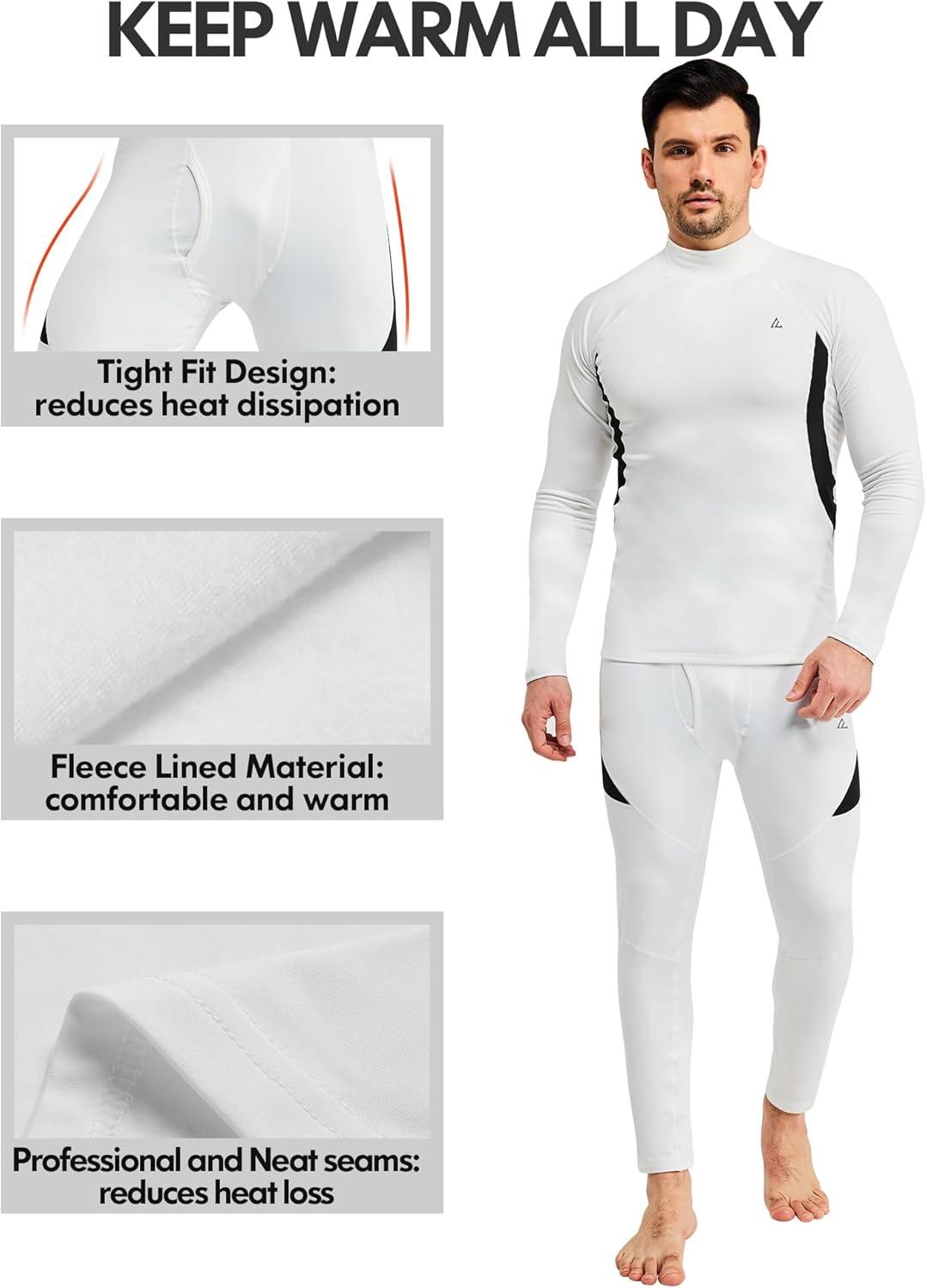CL convallaria 2 Pack Mens Thermal Underwear Fleece Lined Long Johns Winter Base Layer Cold Weather Hunting Gear(Black & White-turtle Neck)