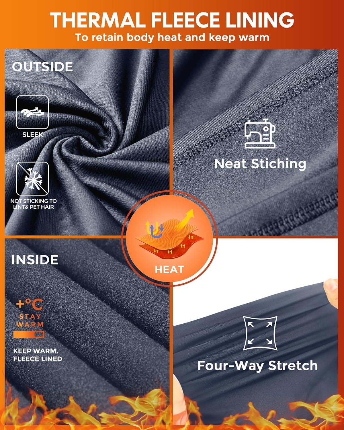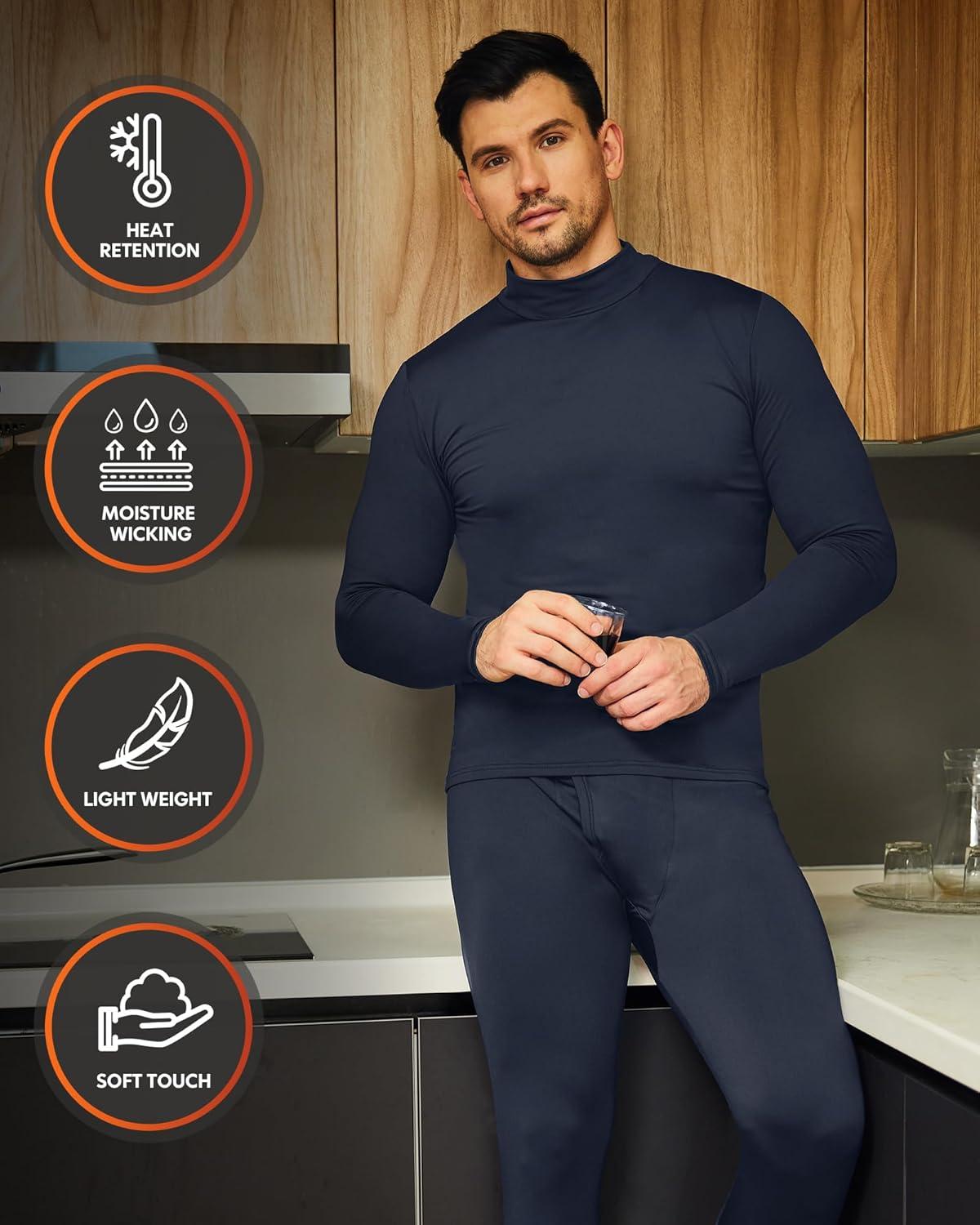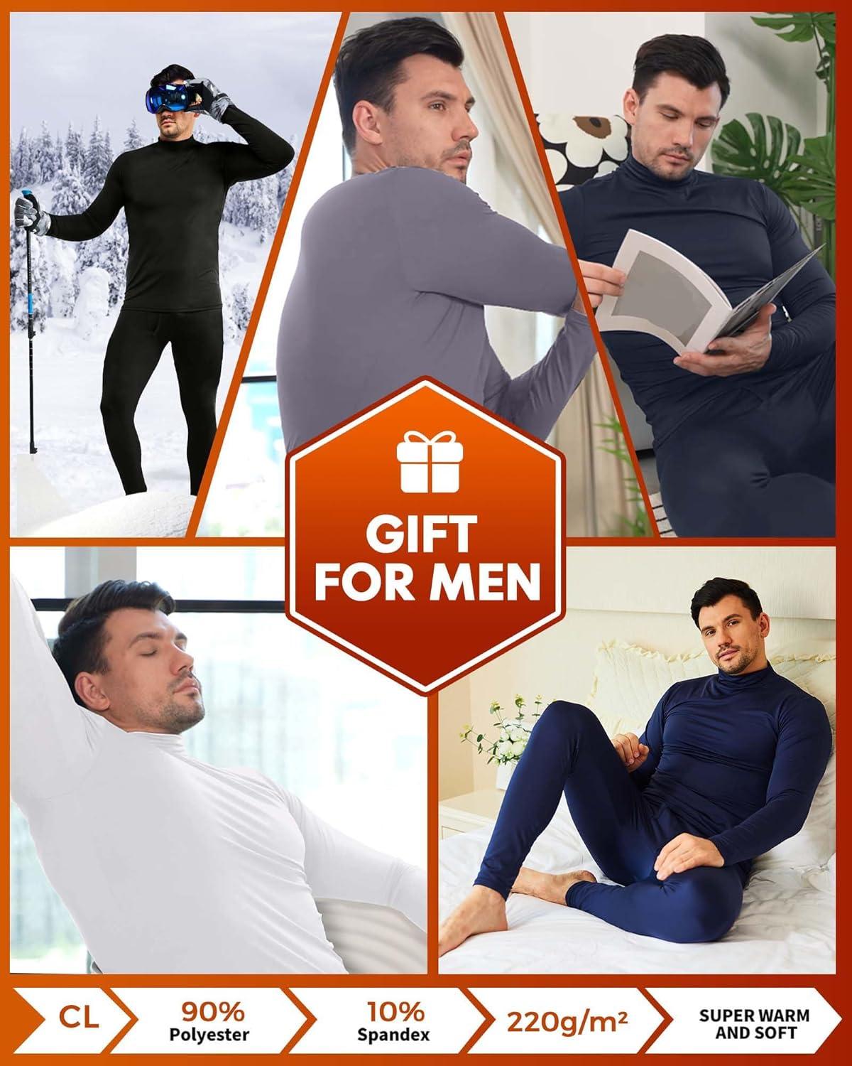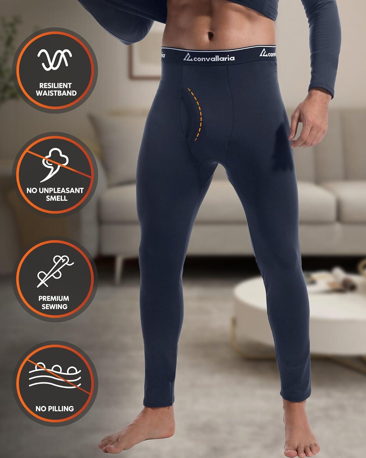 CL convallaria 2 Pack Thermal Underwear for Men Long Johns Fleece Lined Base Layer Set Winter Bottom Top 2XS-6XL(Black)