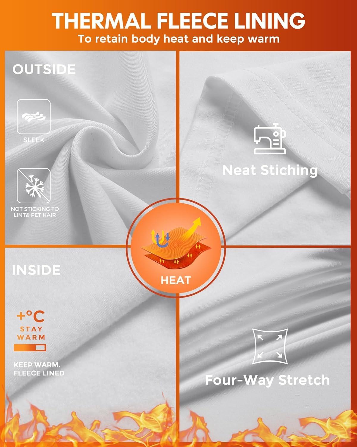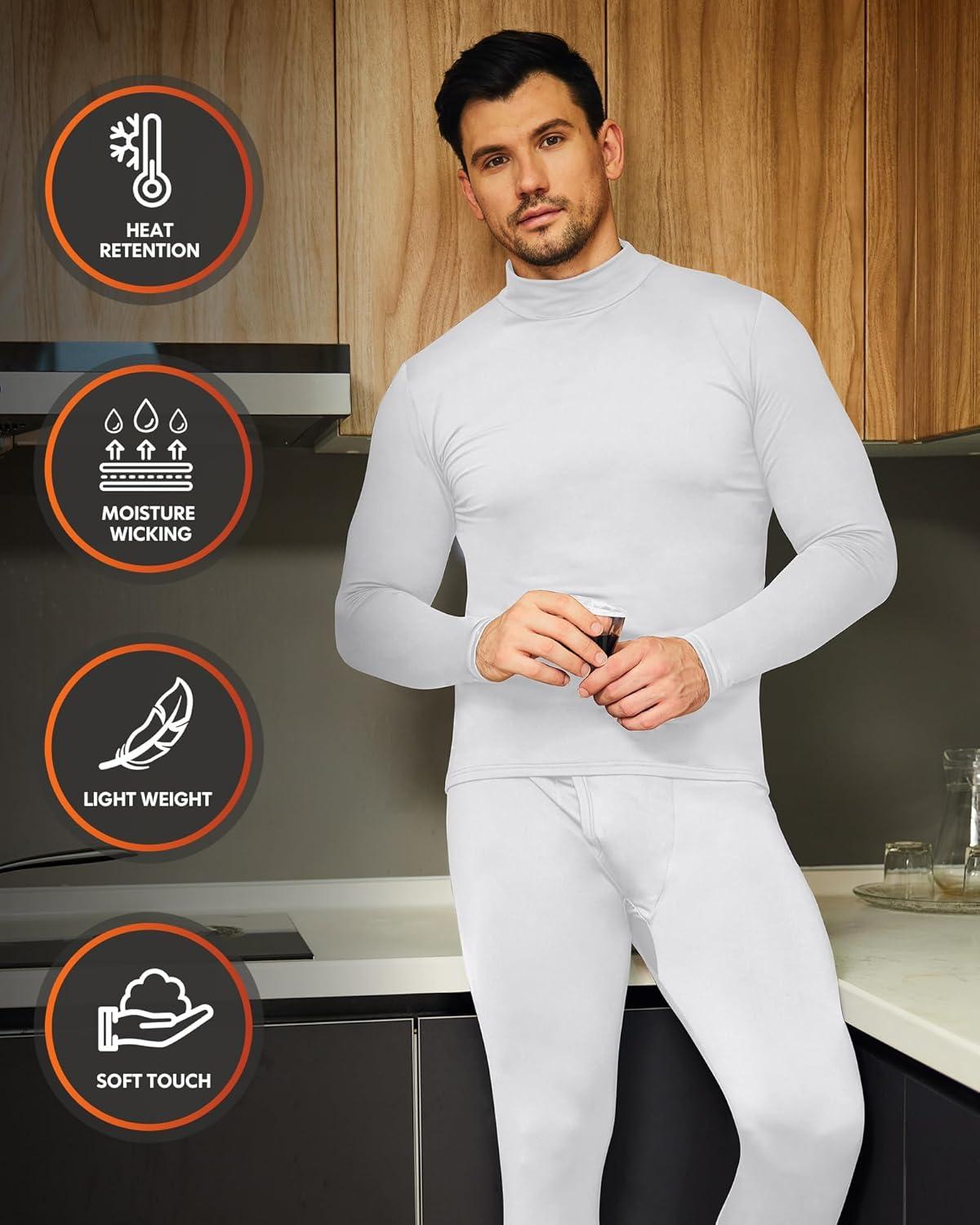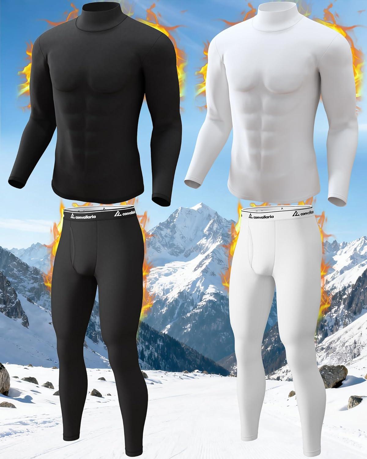 CL convallaria 2 Pack Thermal Underwear for Men Long Johns Fleece Lined Base Layer Set Winter Bottom Top 2XS-6XL(Turtle Neck-black/White)