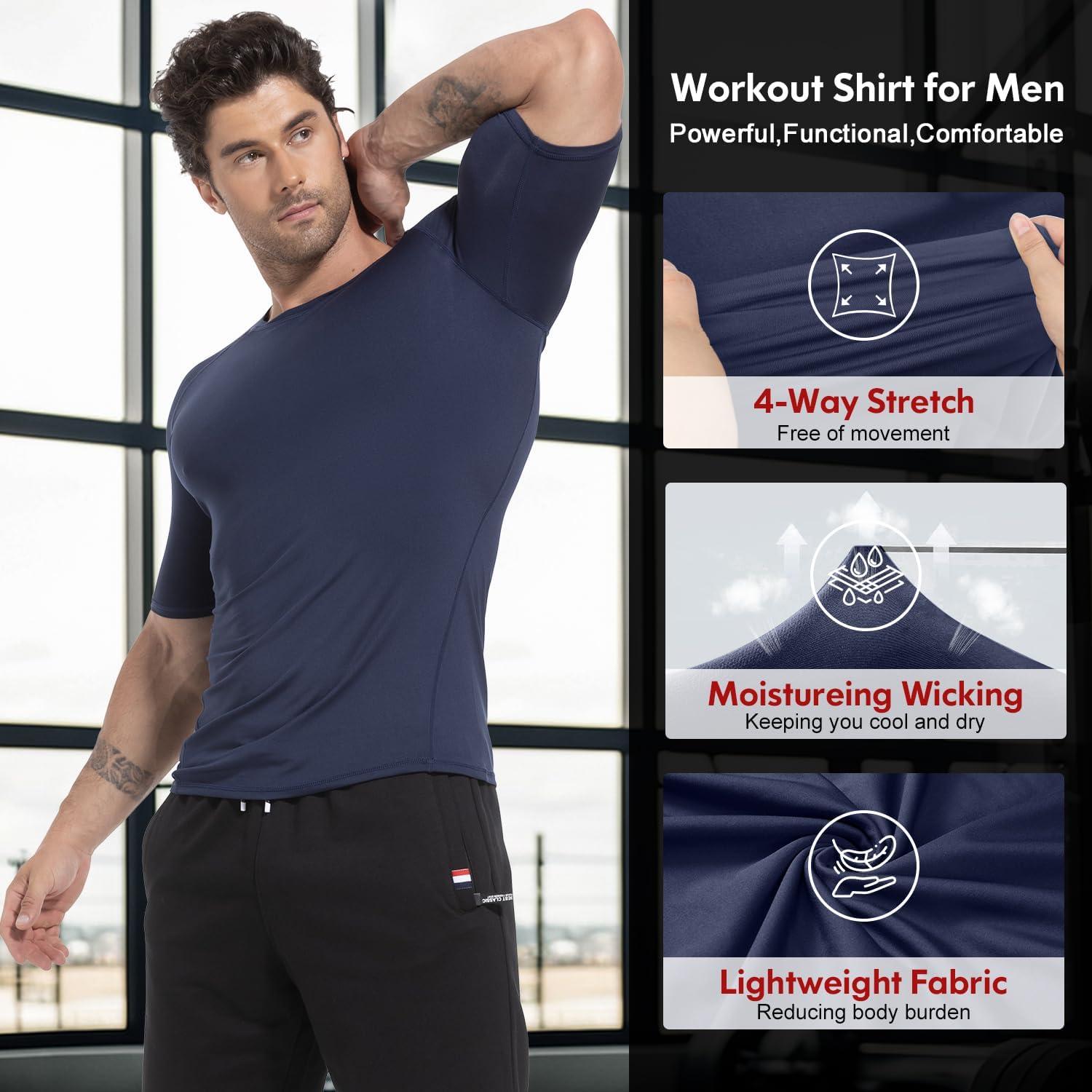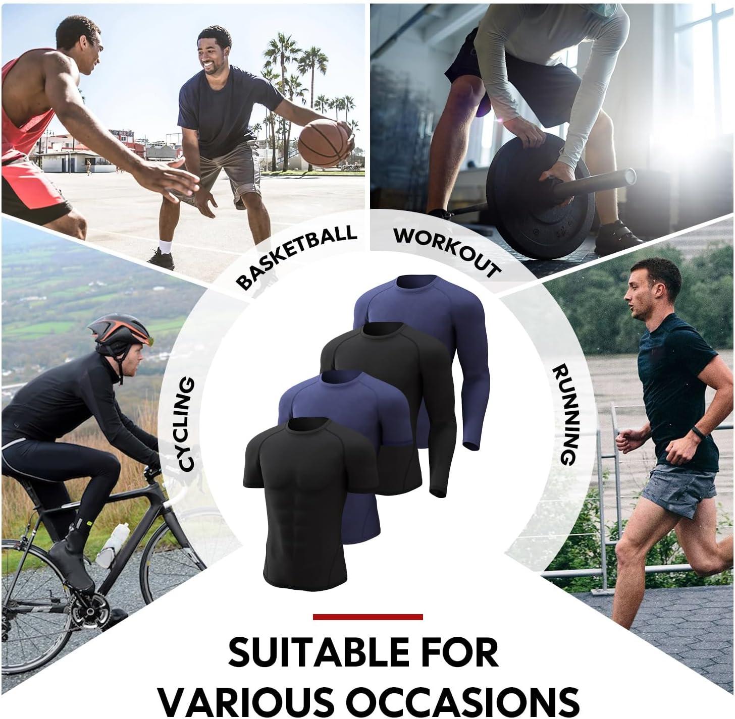 CL convallaria 4 Pack Compression Shirts Men Long Short Sleeve Cooling Dry Rash Guard Athletic Workout T Shirt for Sports(2 Black & 2 Blue)