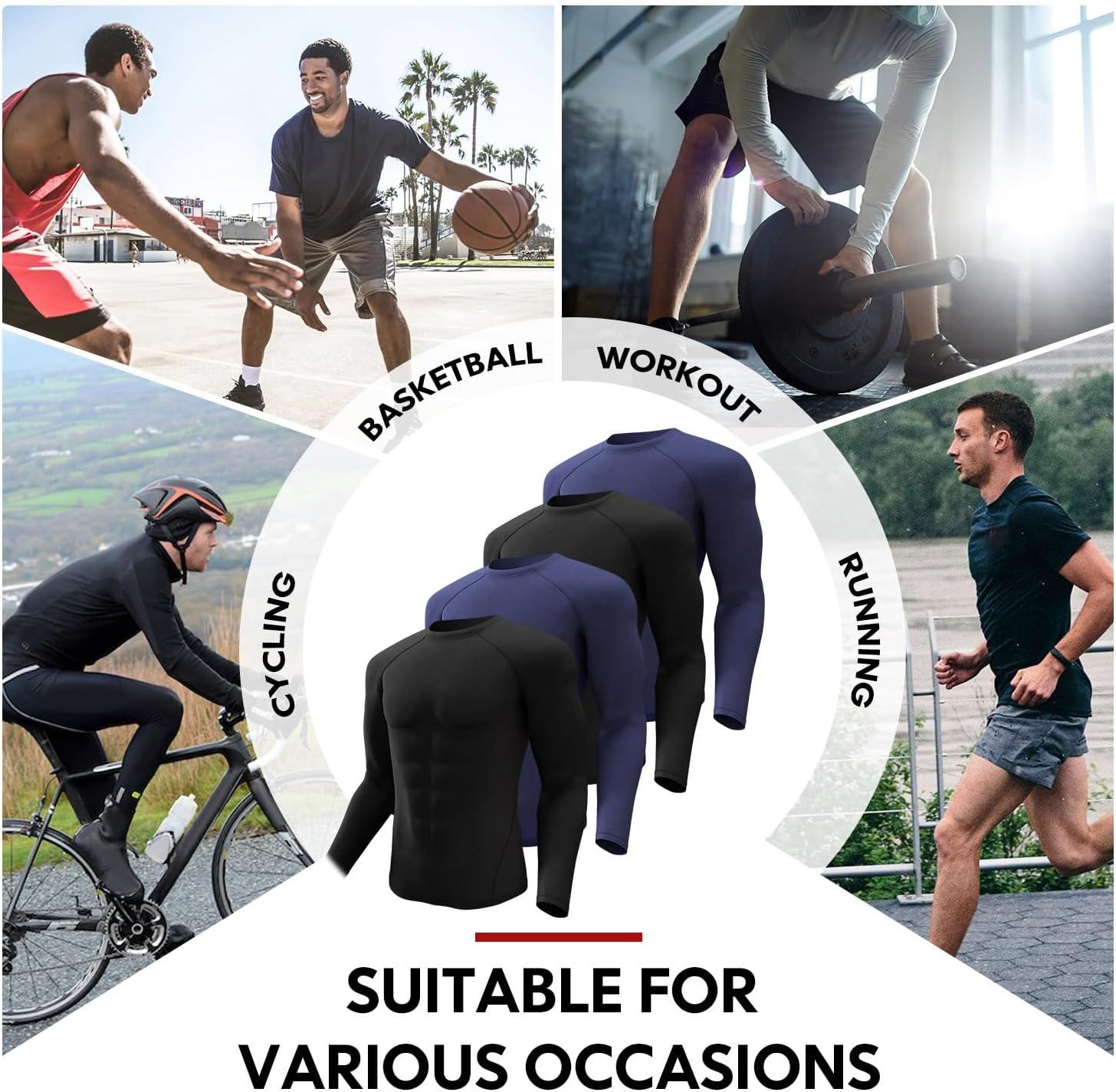 CL convallaria 4 Pack Compression Shirts Men Long Short Sleeve Cooling Dry Rash Guard Athletic Workout T Shirt for Sports(Long Sleeve-2 Black & 2 Blue)