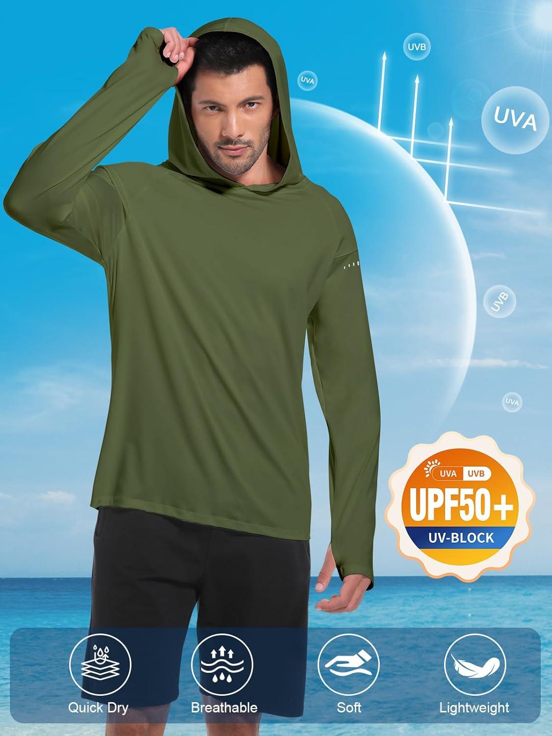 CL convallaria 4 Pack men’s Long sleeve fishing shirt lightweight thin athletic workout hoodies UV UPF 50+ sun hoodie(Black-heather Deep Gray-deep Blue-army Green)