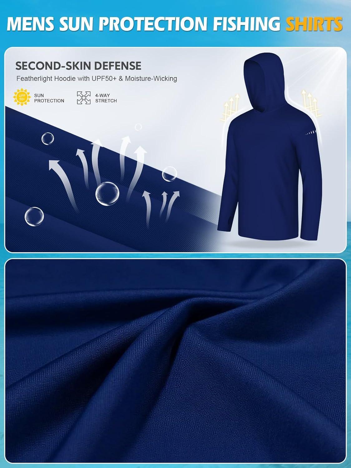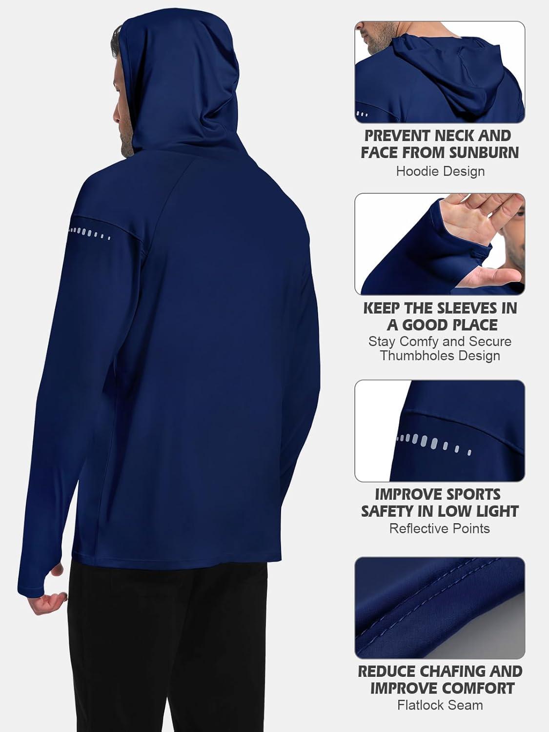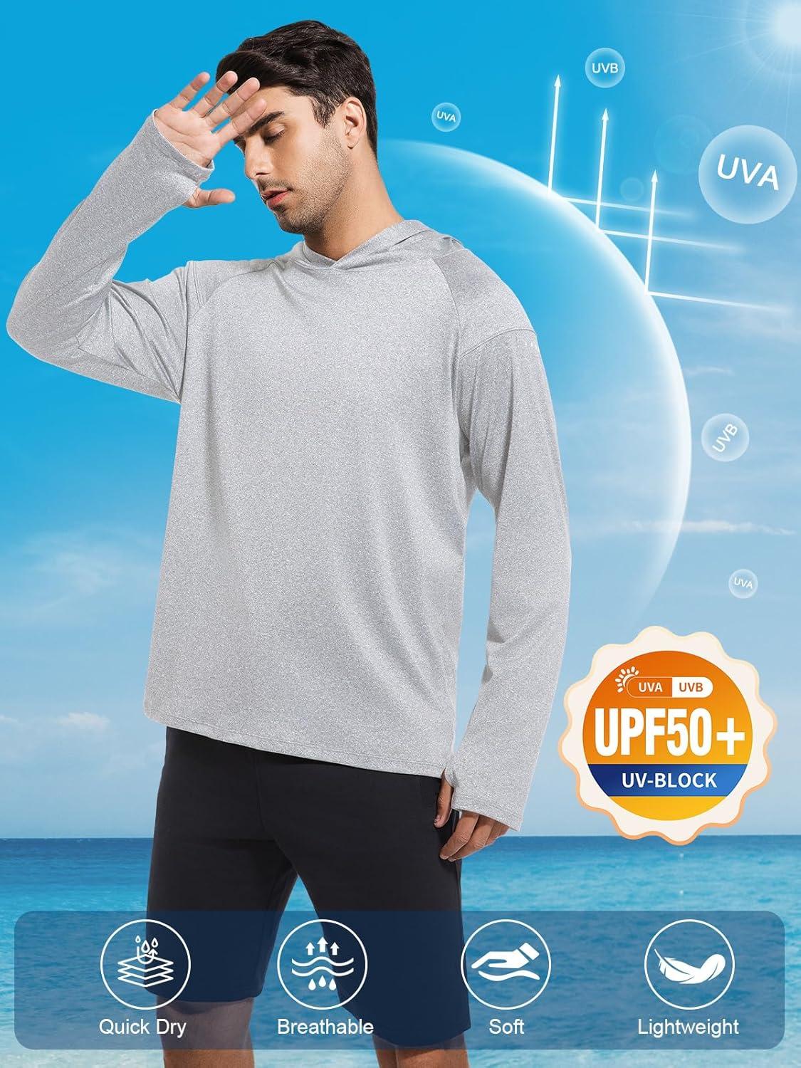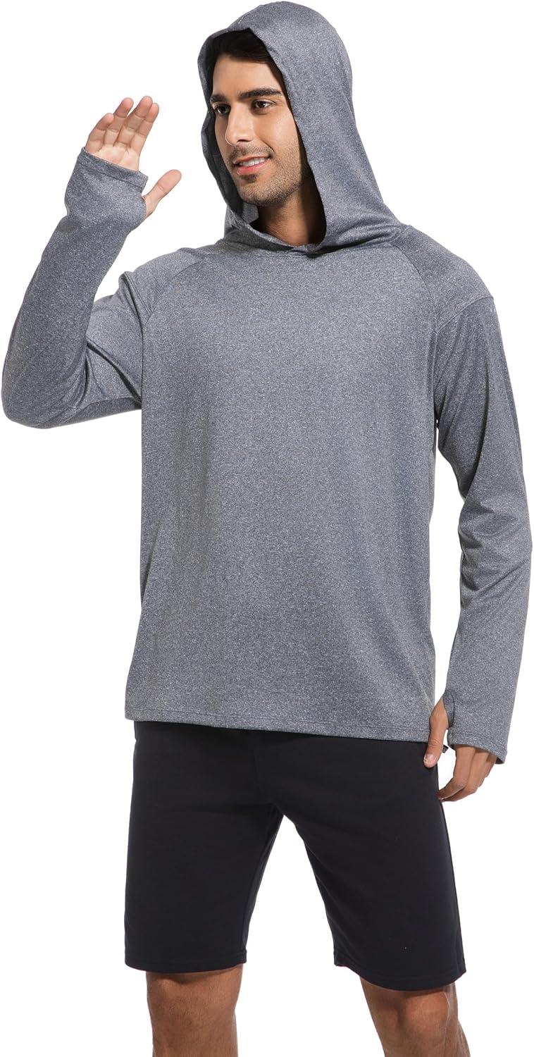 CL convallaria 4 Pack men’s Long sleeve fishing shirt lightweight thin athletic workout hoodies UV UPF 50+ sun hoodie(Black-heather Deep Gray-heather Light Gray-deep Blue)