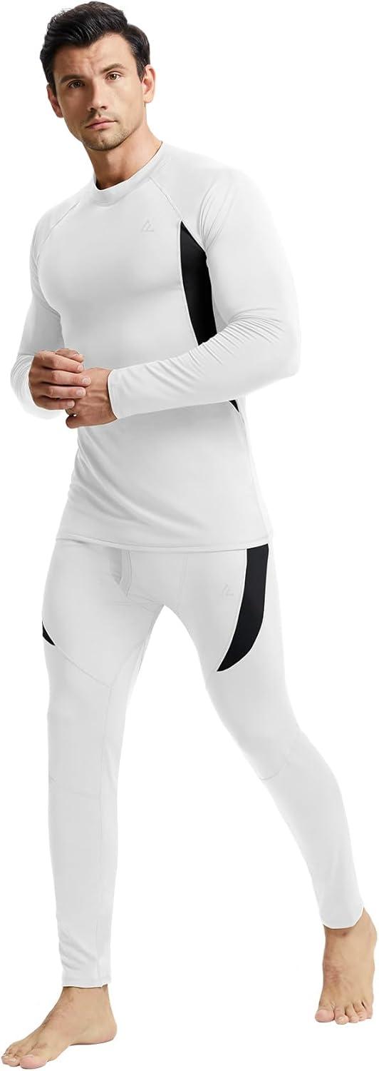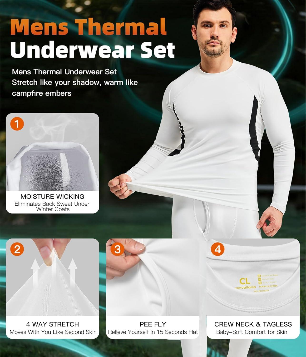 CL convallaria Mens Thermal Underwear Set with Fly Long Johns Base Layer Winter Hunting Gear Sport Top and Bottom(A-white)