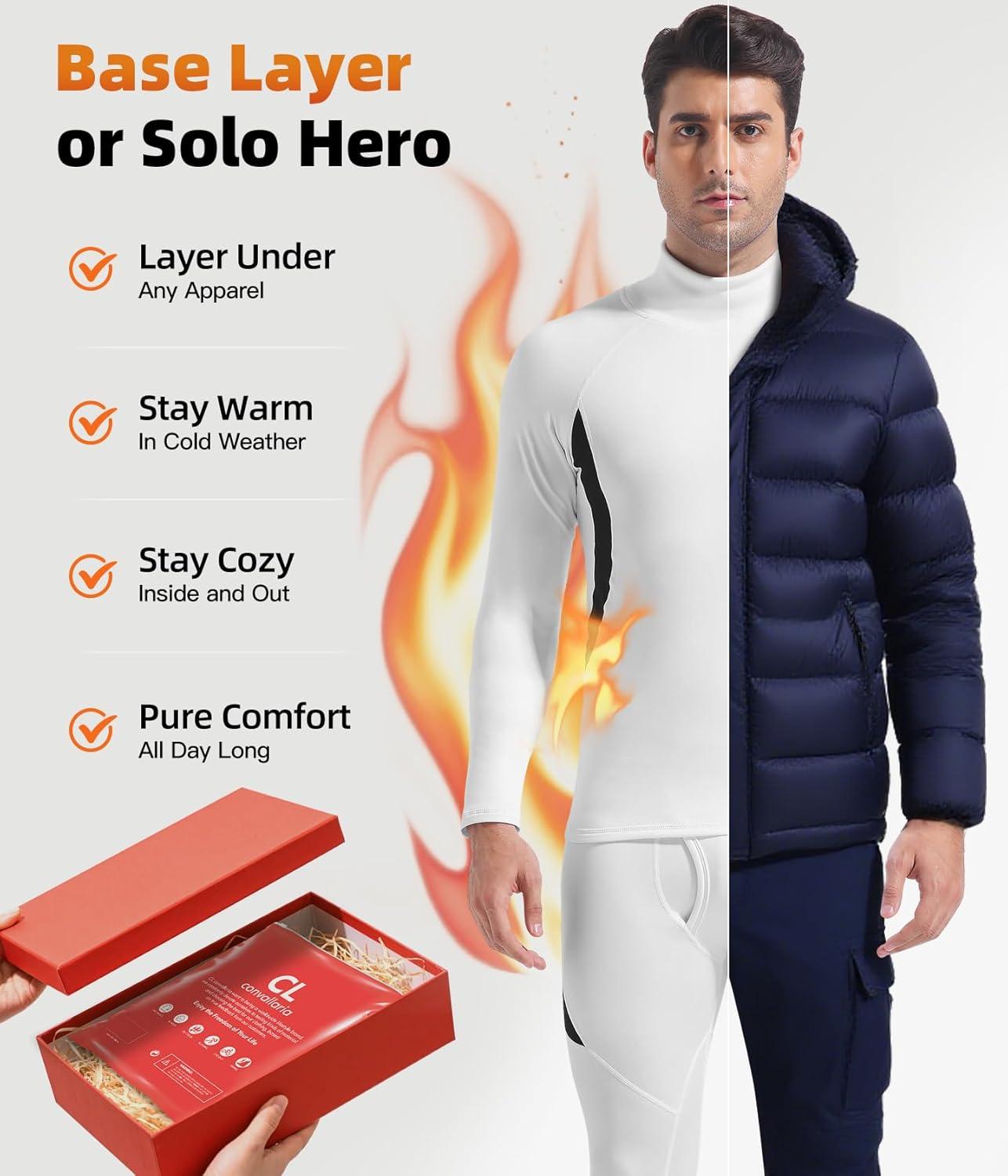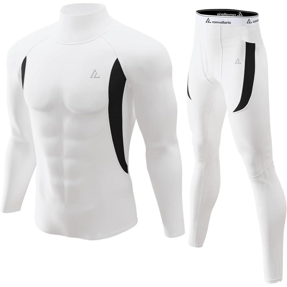 CL convallaria Mens Thermal Underwear Set with Fly Long Johns Base Layer Winter Hunting Gear Sport Top and Bottom(B-white)
