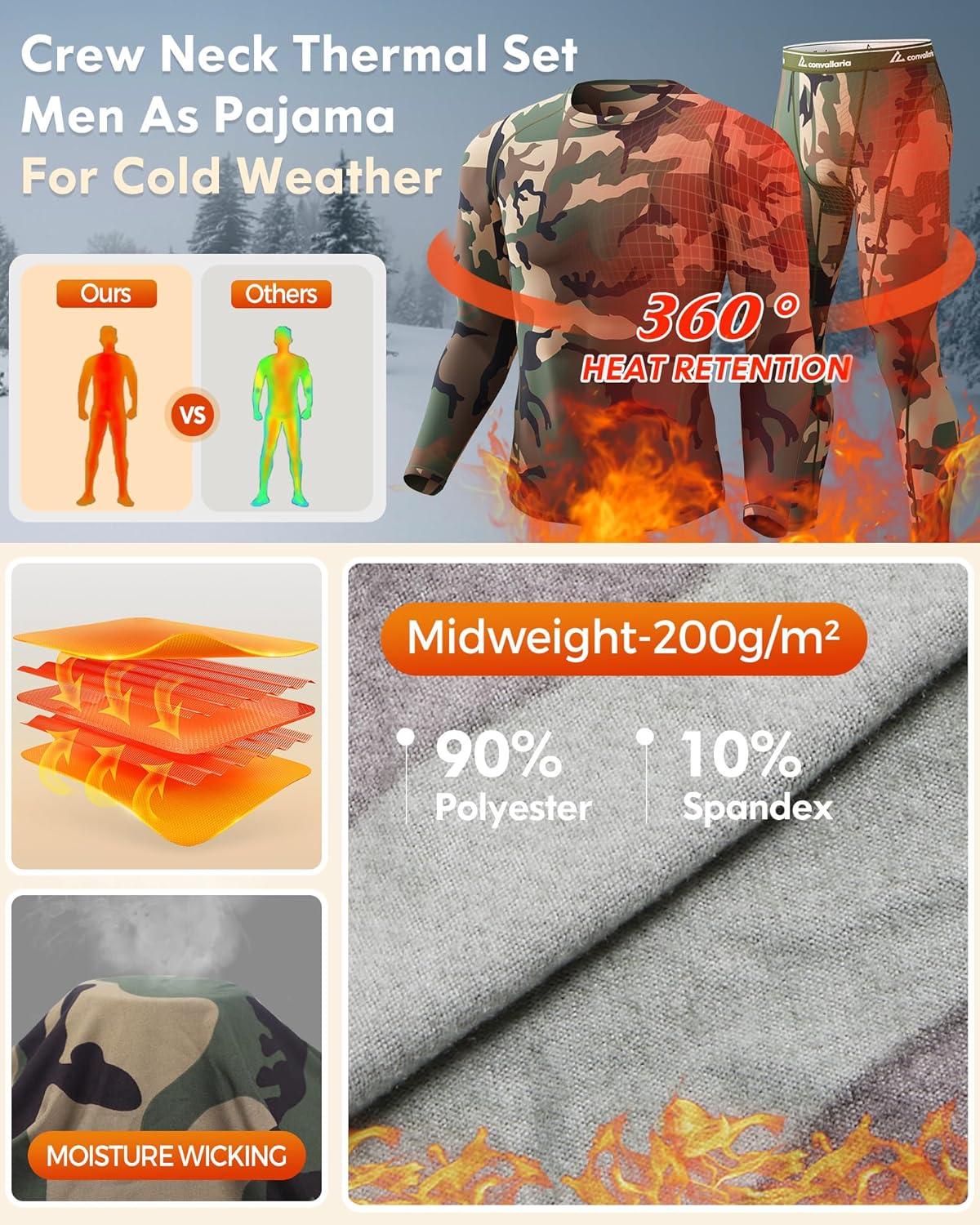 CL convallaria Thermal Underwear for Men Long Johns Fleece Lined Hunting Gear Set Base Layer for Cold Weather XS-4XL(Midweight-crew Neck-camo)