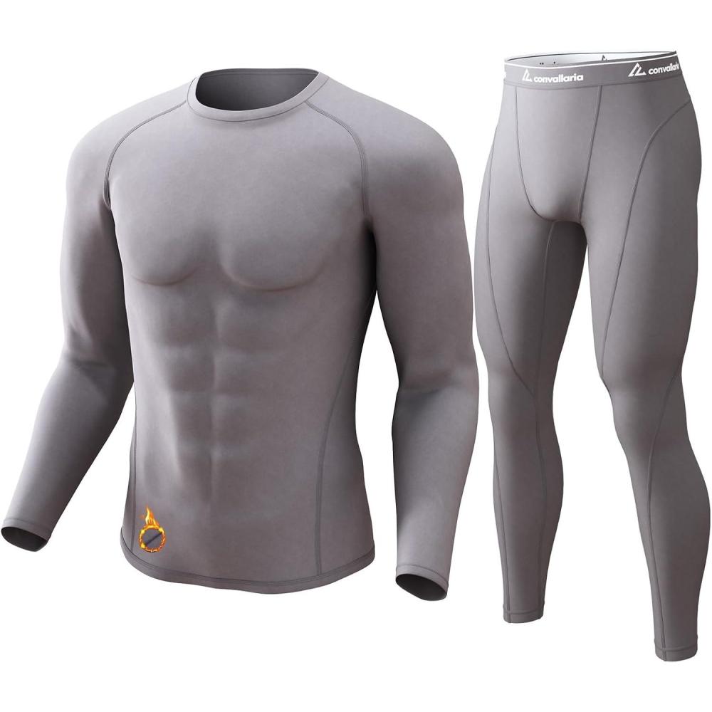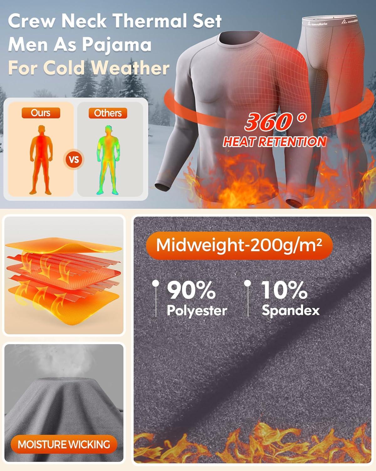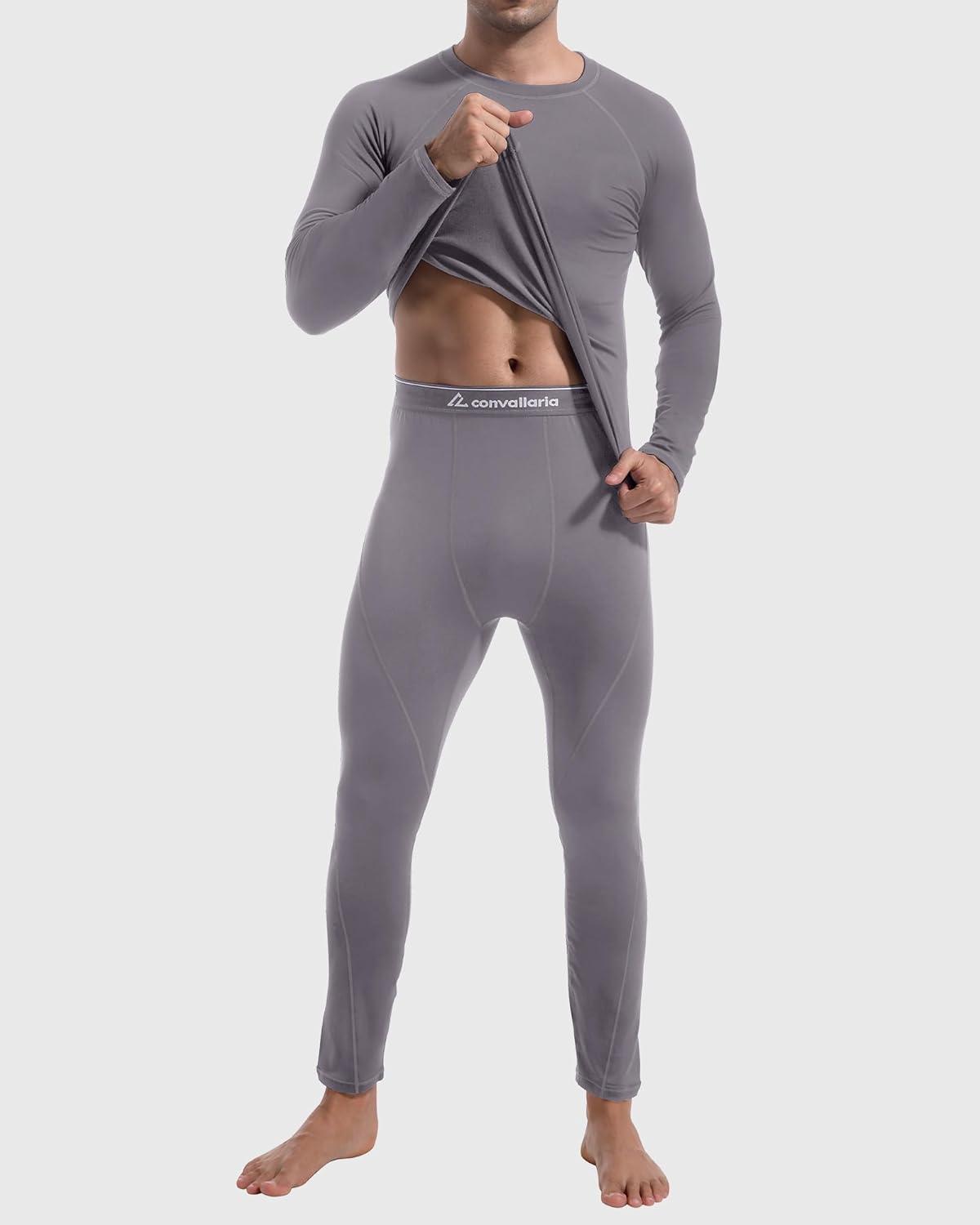 CL convallaria Thermal Underwear for Men Long Johns Fleece Lined Hunting Gear Set Base Layer for Cold Weather XS-4XL(Midweight-crew Neck-grey)