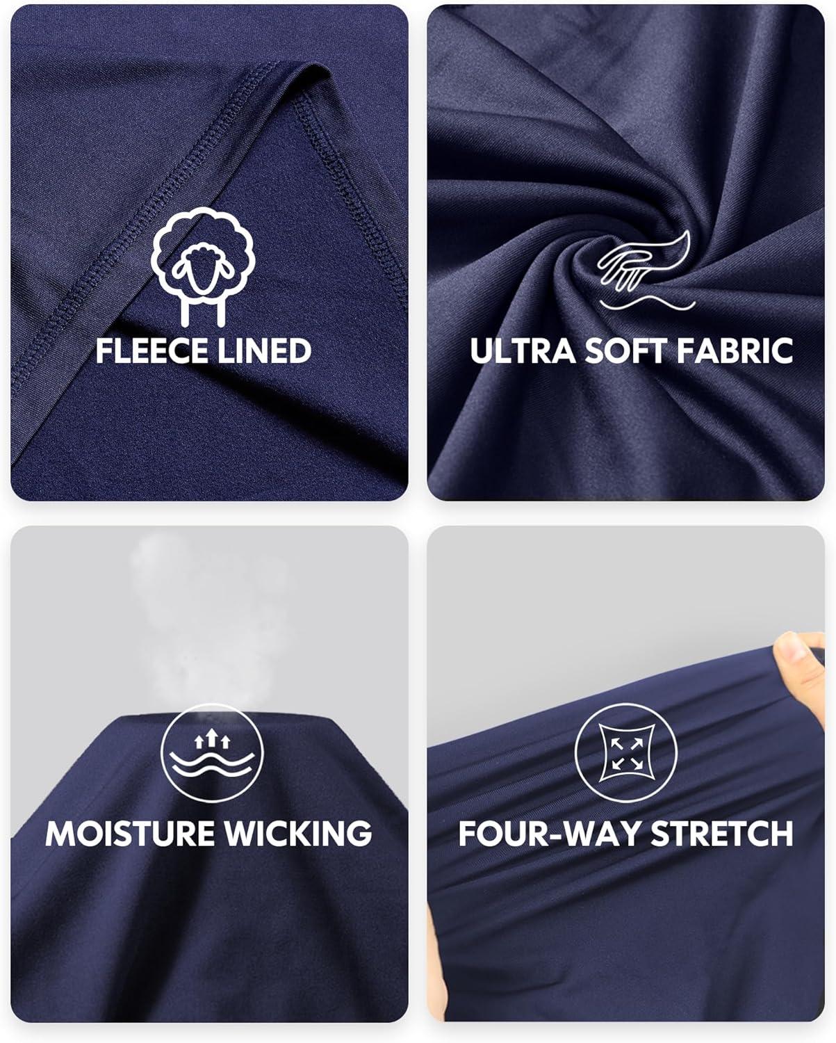 CL convallaria Thermal Underwear for Men Long Johns Fleece Lined Hunting Gear Set Base Layer for Cold Weather XS-4XL(Midweight-crew Neck-navy Blue)