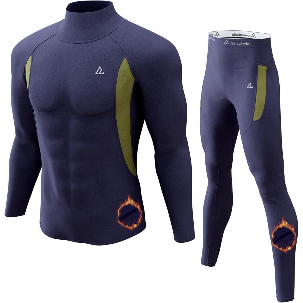 CL convallaria Thermal Underwear Long Johns Set Mens Winter Gift Hunting Gear Sport Base Layer Bottom Top(2-navy Blue)
