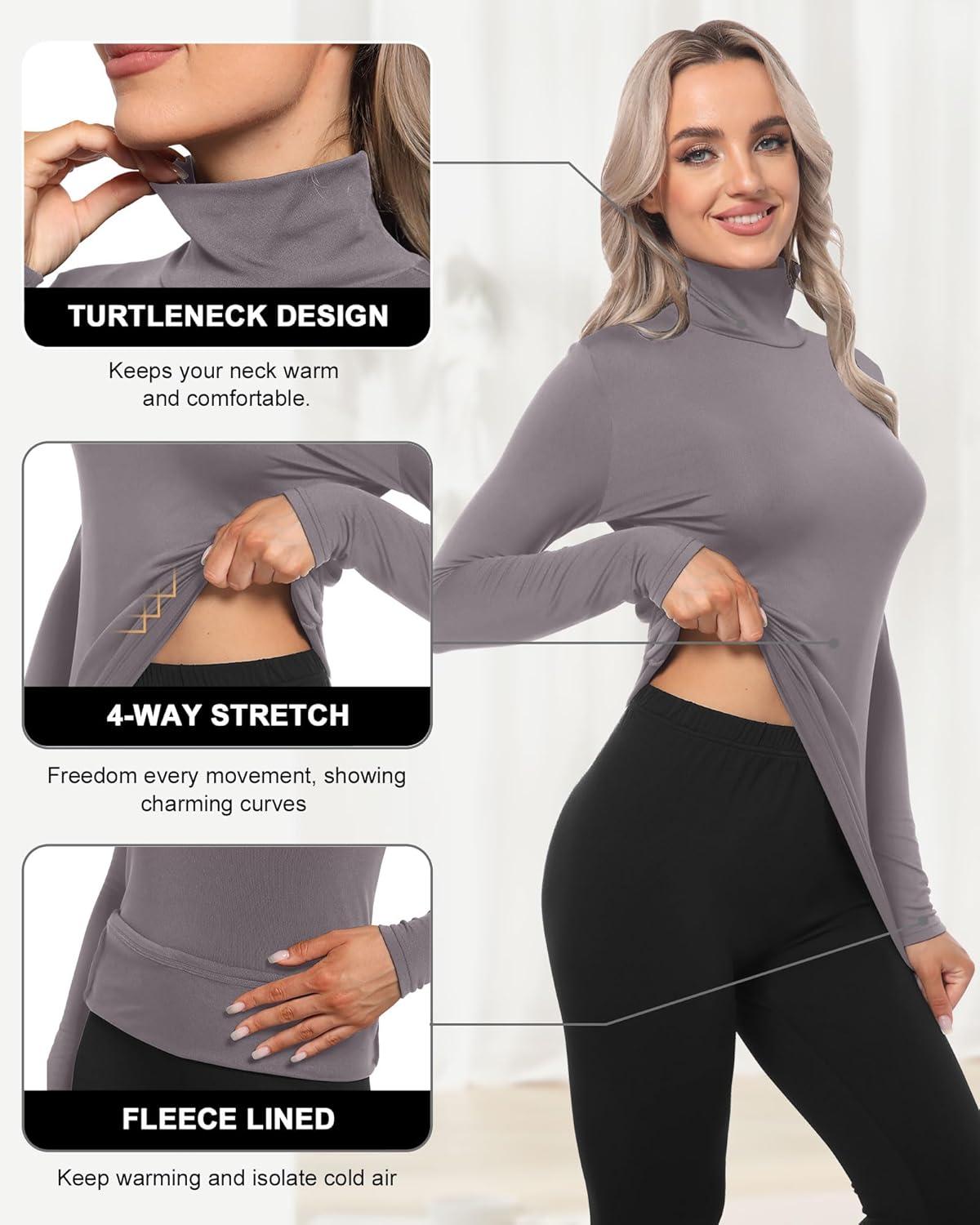 CL convallaria Turtleneck Thermal Underwear Shirts Women Fleece Lined Base Layer Tops Long Sleeve 2 4 Pack(Mock Neck-black & Grey)