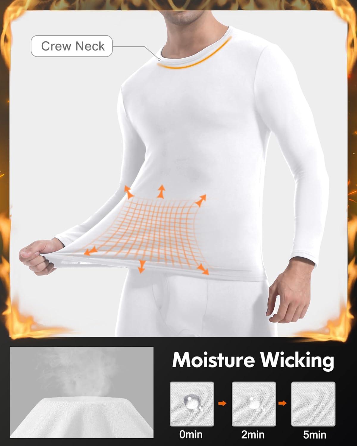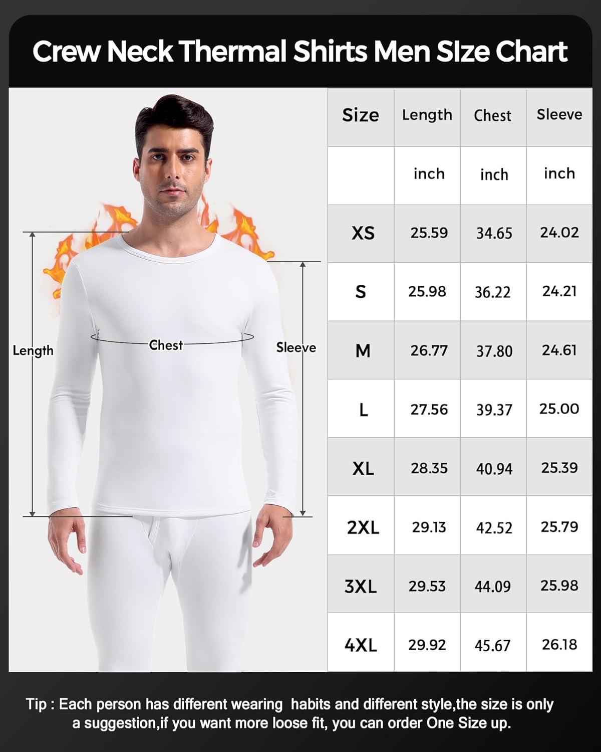 Men’s Thermal Shirt 1/2/4 Pcs Fleece Lined Long Sleeve Tops Athletic Base Layer Long John Shirts for Men(2#-black/White)