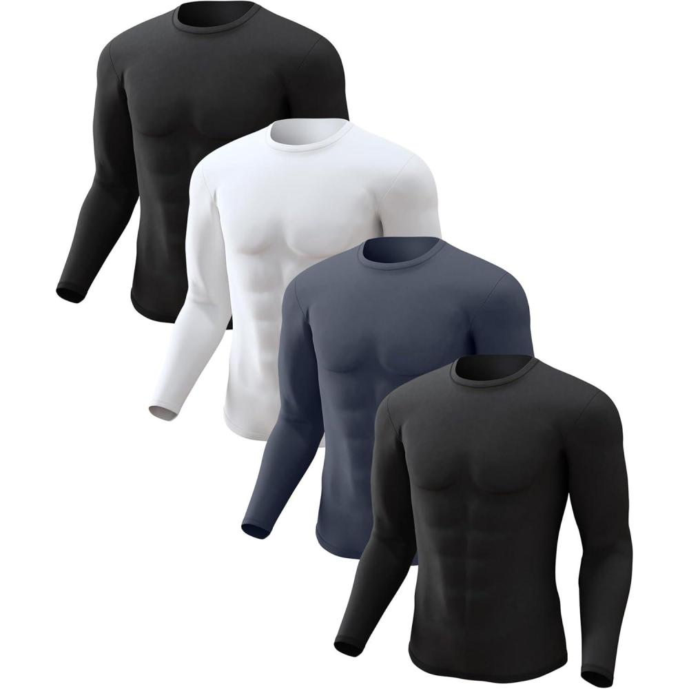Men’s Thermal Shirt 1/2/4 Pcs Fleece Lined Long Sleeve Tops Athletic Base Layer Long John Shirts for Men(4# White/2black/Charcoal)