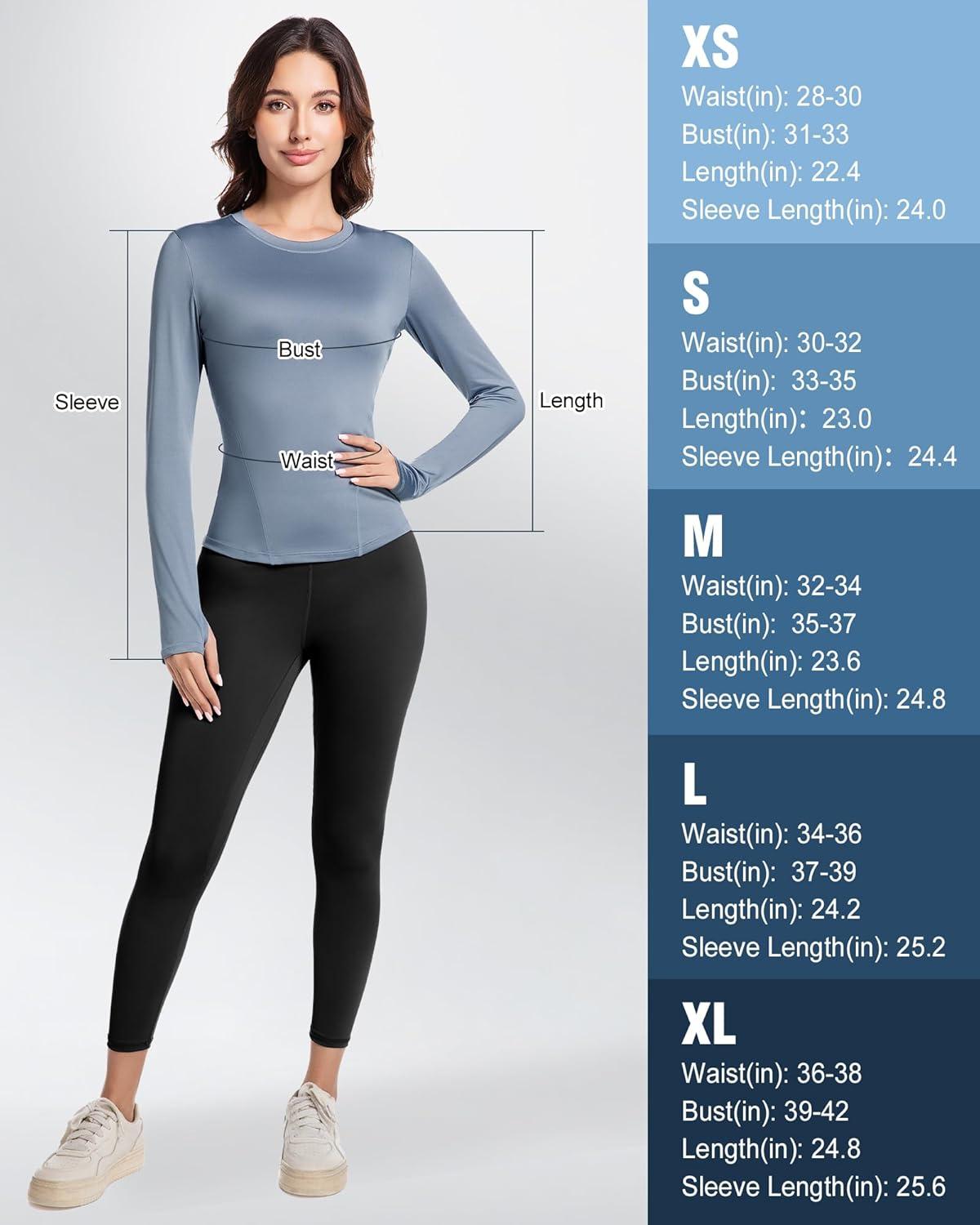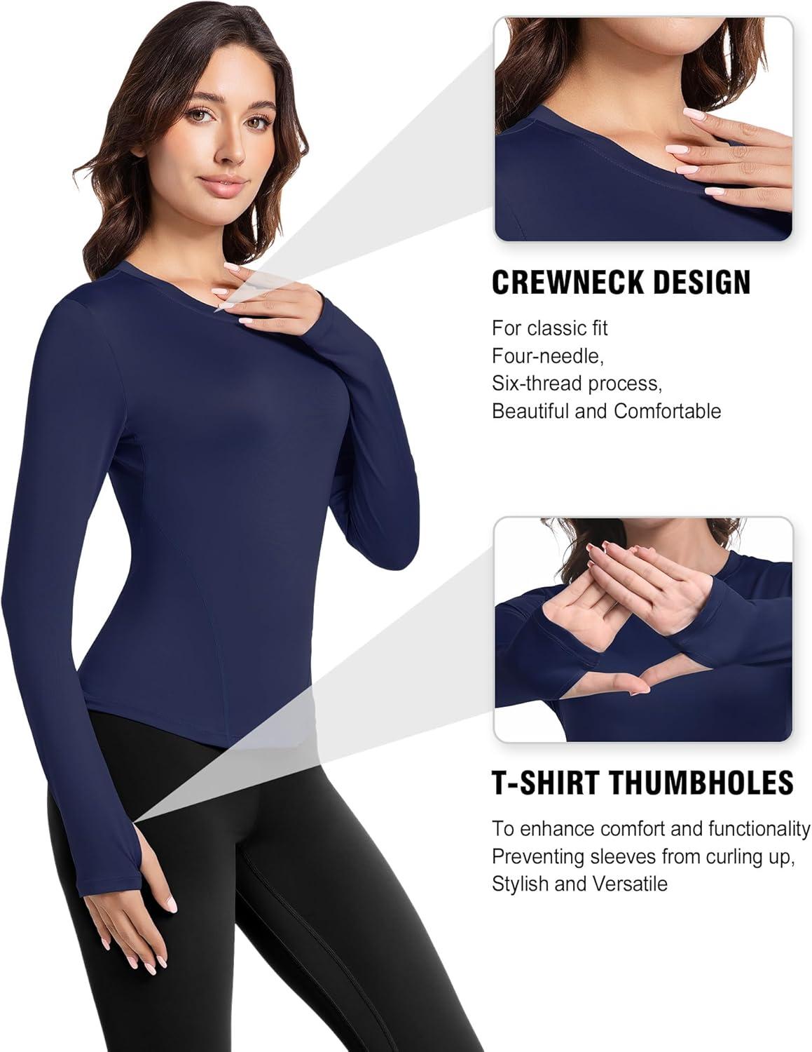 Women’s Compression Shirt Long Sleeve Athletic Workout Tops Sun Protection Undershirt for Gym Yoga Running(Black+white+haze Blue+dark Blue)