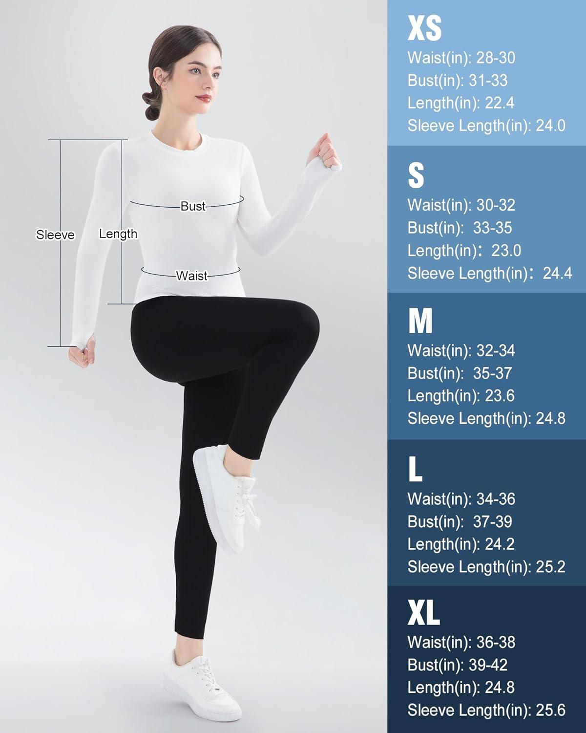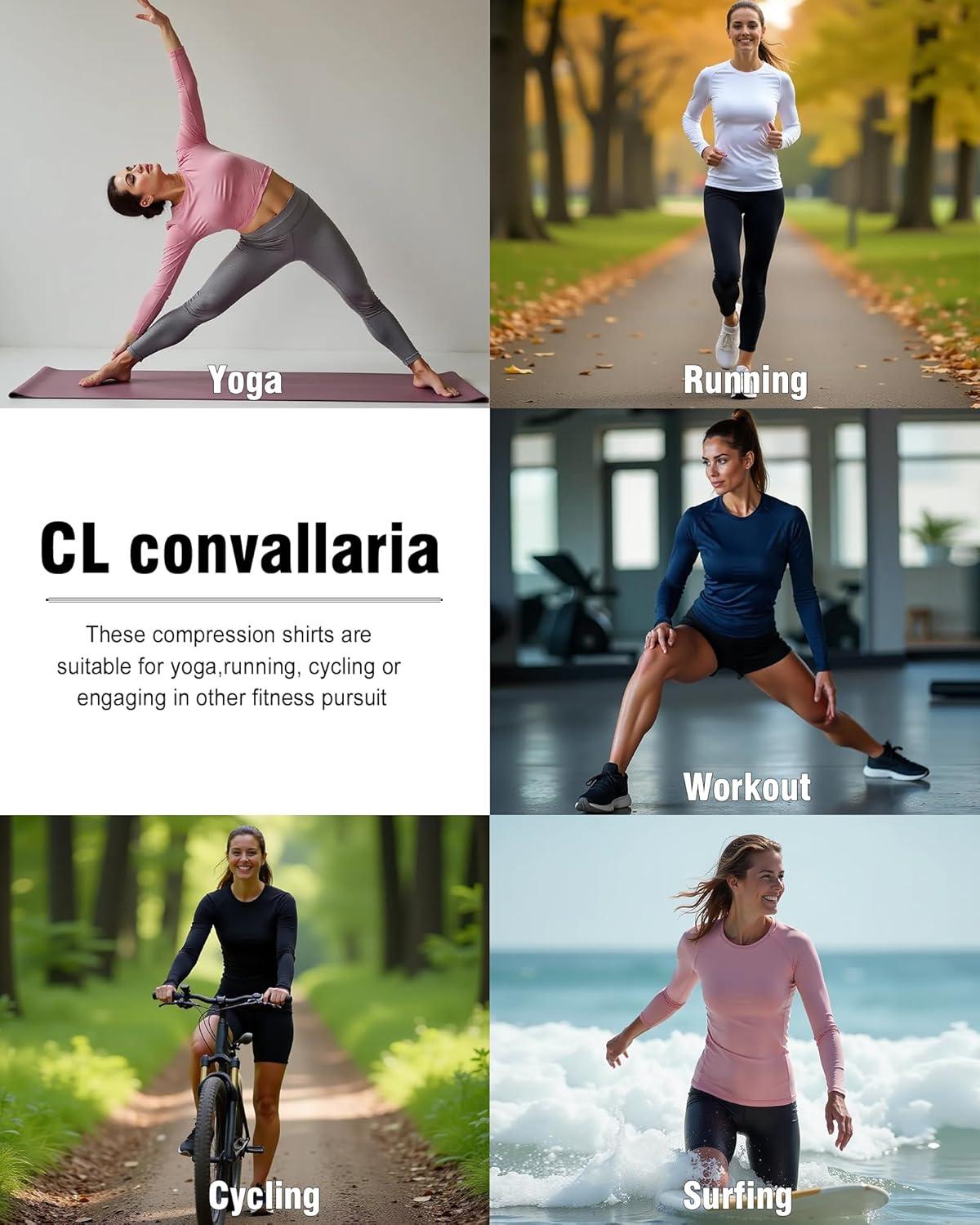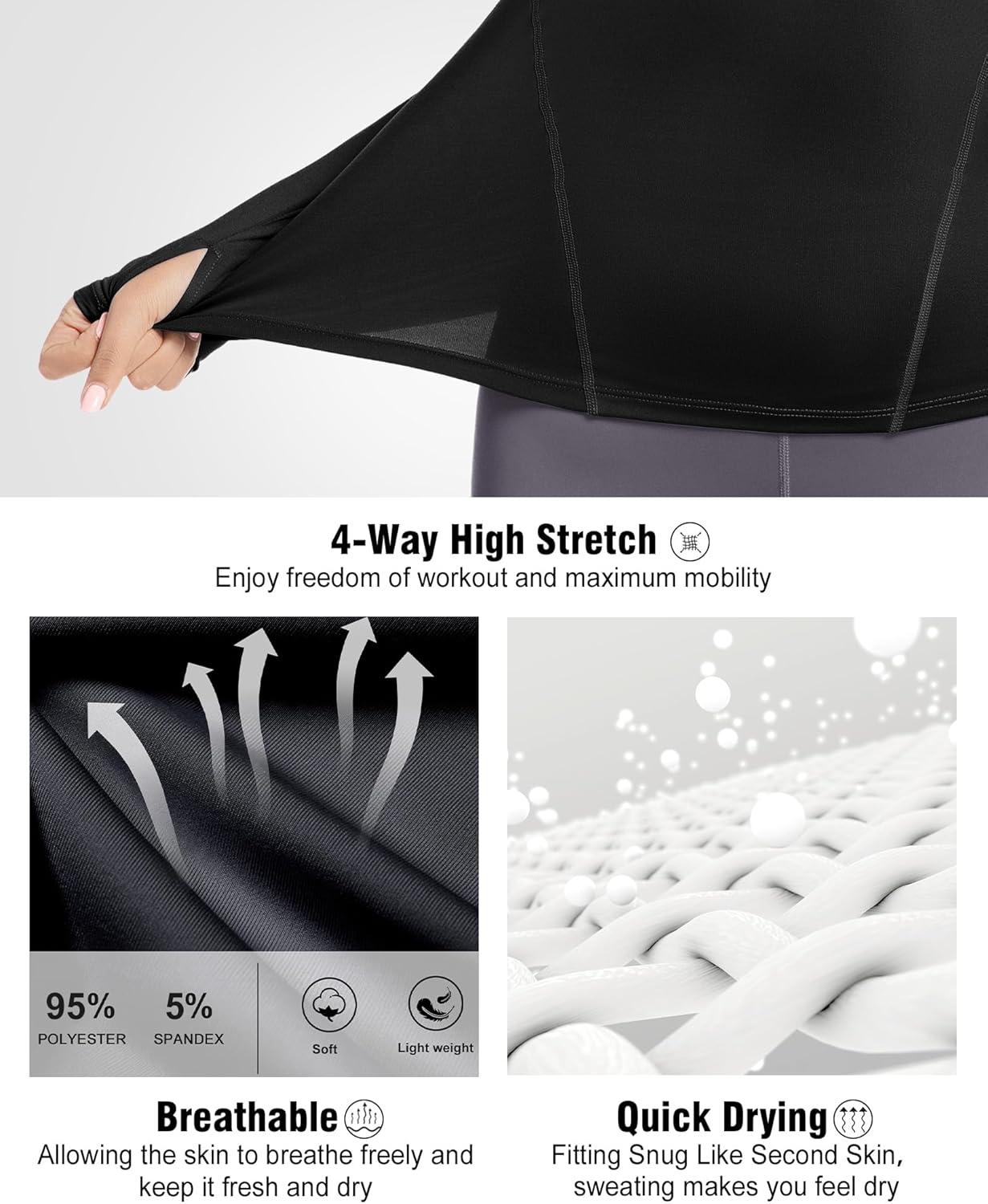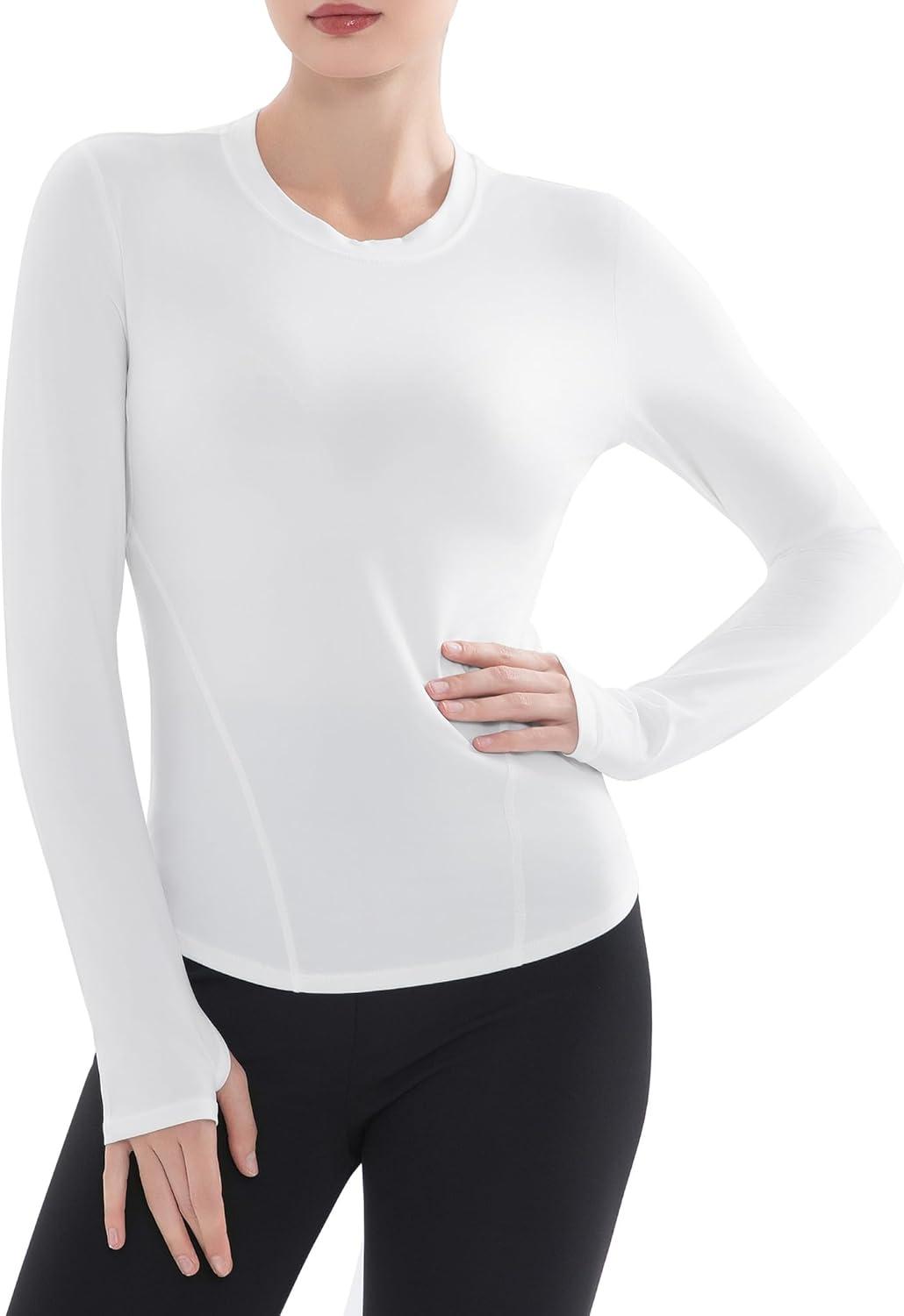 Women’s Compression Shirt Long Sleeve Athletic Workout Tops Sun Protection Undershirt for Gym Yoga Running(Black+white+heather Ligth Gray+royal Blue)