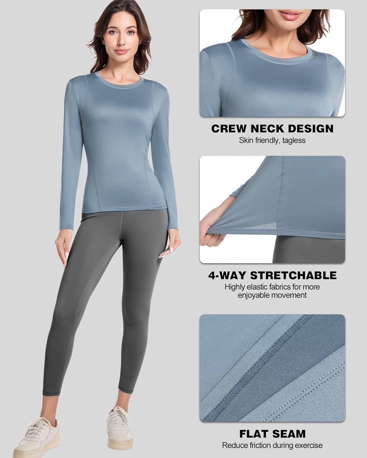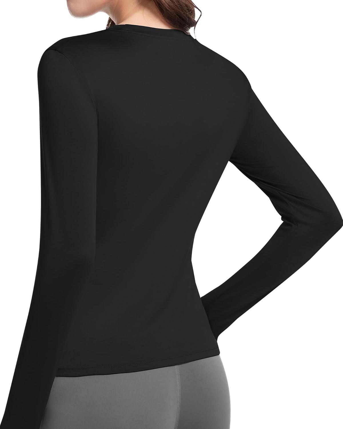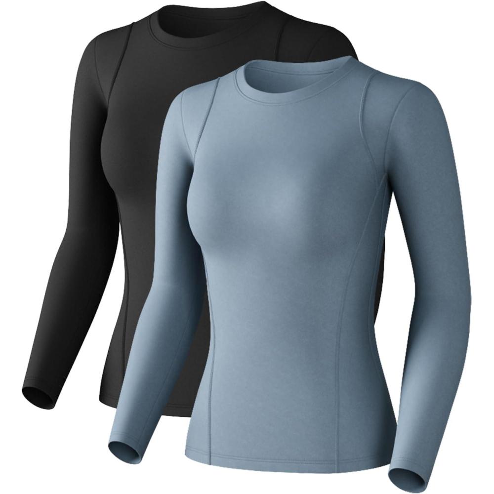 Women’s Compression Shirts Long Sleeve Athletic Workout Tops Cool Dry Underscrubs Sun Protection for Gym Yoga Running(Black+haze Blue)