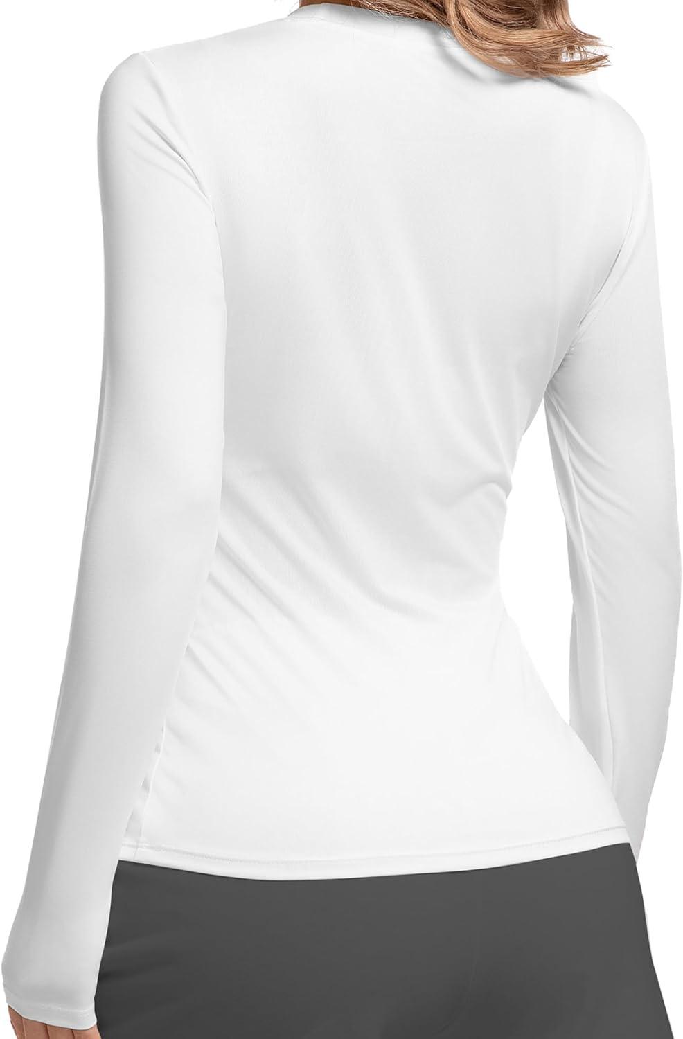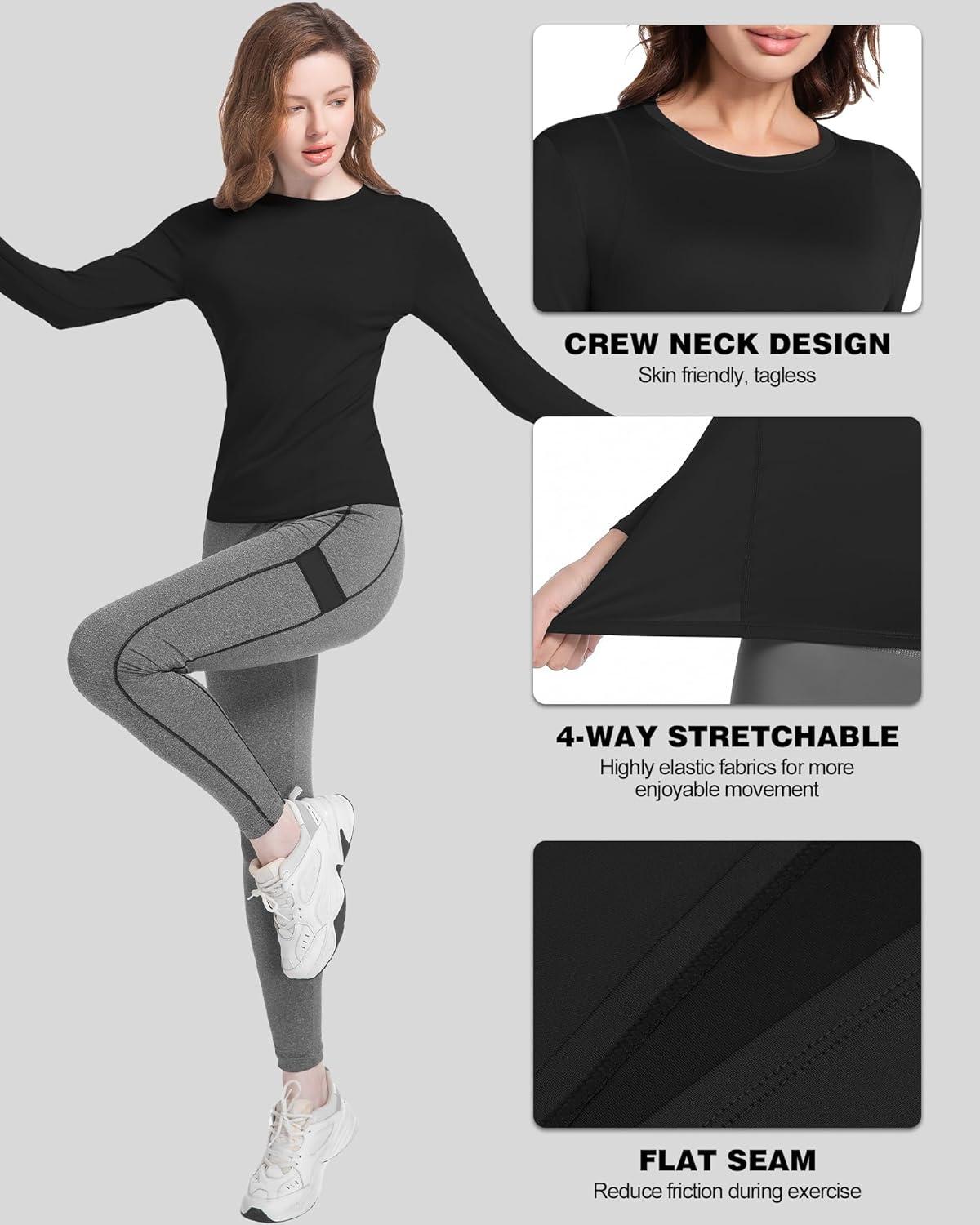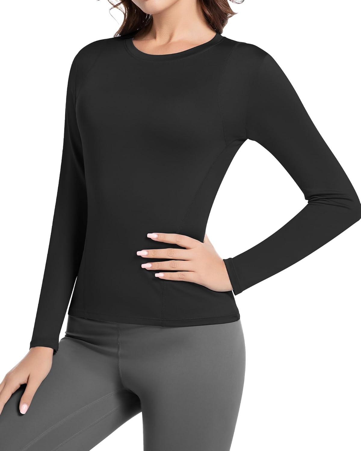Women’s Compression Shirts Long Sleeve Athletic Workout Tops Cool Dry Underscrubs Sun Protection for Gym Yoga Running(Black+white)
